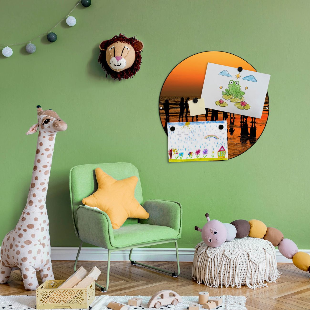 FUNKTION / DESIGN Die banjado Magnettafel mit dem Motiv Motiv Koh Samet Beach bringt Ordnung in Ihr Zettelchaos. Fotos, Termine, Notizen oder Rezepte lassen Sich hier stilvoll mit Magneten ordnen, Sie behalten alles im Blick. Die Design Magnetwand ist beschreibbar und wieder abwischbar. Mit dieser Pinnwand haben Sie auch ohne Notizen und Magneten ein schönes Dekoelement. Das Format bietet Ihnen ausreichend Platz um alle wichtigen Informationen im Blick zu behalten. DETAILS / NUTZEN Die magnetische Metall Pinnwand besteht aus schwarz lackiertem Stahl. Sie hat einen Durchmesser von 47cm. Es befinden sich an den Seiten zwei vorgefertigte Löcher die eine schnelle und unkomplizierte Anbringung ermöglichen. Das Motiv ist mit einem seidenmatten Laminat versehen und schützt so zusätzlich vor Kratzern. Es halten alle handelsüblichen Magneten daran. Wir sind ein kleines Team aus dem Herzen von Sachsen. Wir fertigen alle Artikel von Hand für Sie an, Sie erhalten keine preiswerte Importware. Auf Wunsch können Sie auch Ihr eigenes Foto auf die Magnettafel aufbringen, schreiben Sie uns an.