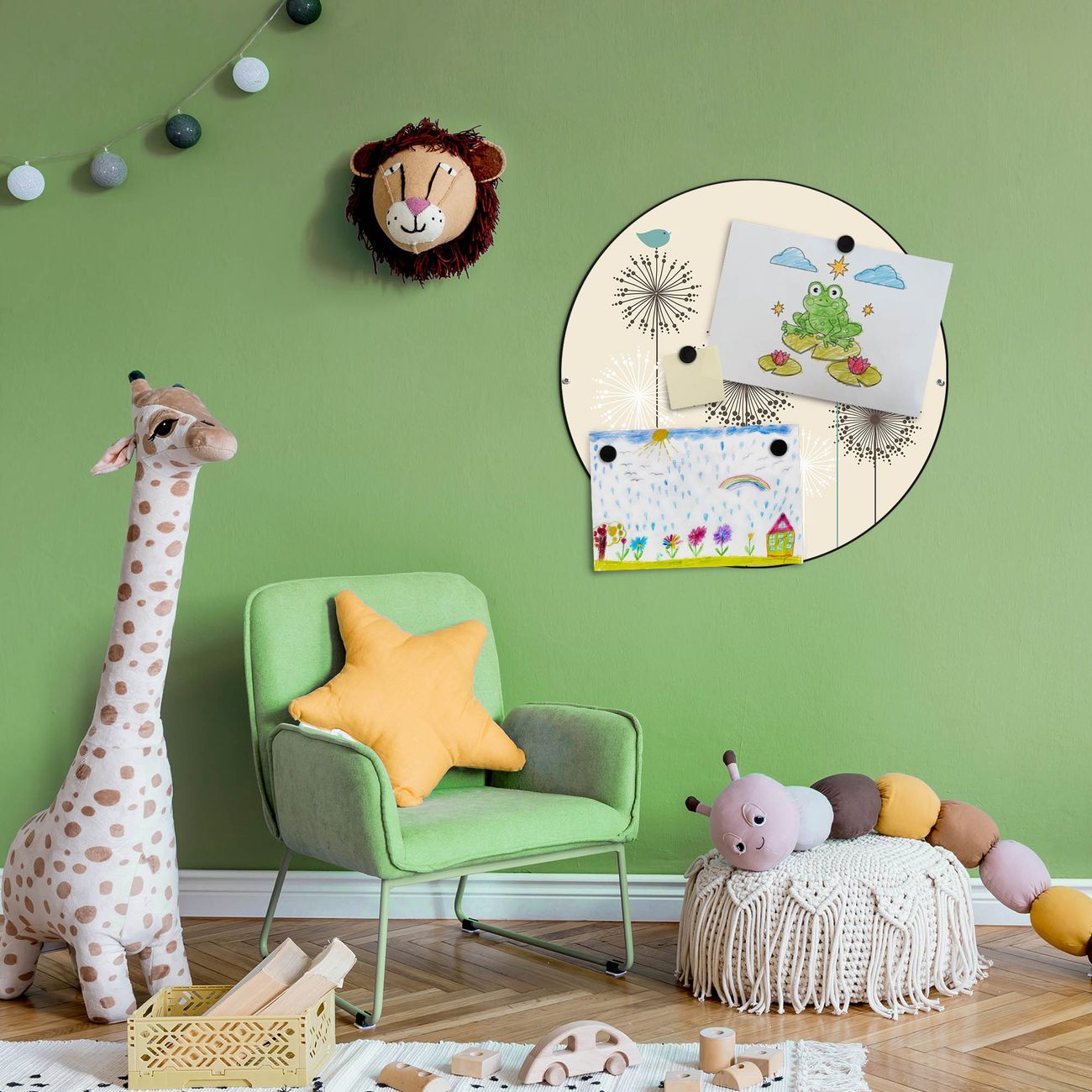 FUNKTION / DESIGN Die banjado Magnettafel mit dem Motiv Motiv Kugelfontänen bringt Ordnung in Ihr Zettelchaos. Fotos, Termine, Notizen oder Rezepte lassen Sich hier stilvoll mit Magneten ordnen, Sie behalten alles im Blick. Die Design Magnetwand ist beschreibbar und wieder abwischbar. Mit dieser Pinnwand haben Sie auch ohne Notizen und Magneten ein schönes Dekoelement. Das Format bietet Ihnen ausreichend Platz um alle wichtigen Informationen im Blick zu behalten. DETAILS / NUTZEN Die magnetische Metall Pinnwand besteht aus schwarz lackiertem Stahl. Sie hat einen Durchmesser von 47cm. Es befinden sich an den Seiten zwei vorgefertigte Löcher die eine schnelle und unkomplizierte Anbringung ermöglichen. Das Motiv ist mit einem seidenmatten Laminat versehen und schützt so zusätzlich vor Kratzern. Es halten alle handelsüblichen Magneten daran. Wir sind ein kleines Team aus dem Herzen von Sachsen. Wir fertigen alle Artikel von Hand für Sie an, Sie erhalten keine preiswerte Importware. Auf Wunsch können Sie auch Ihr eigenes Foto auf die Magnettafel aufbringen, schreiben Sie uns an.