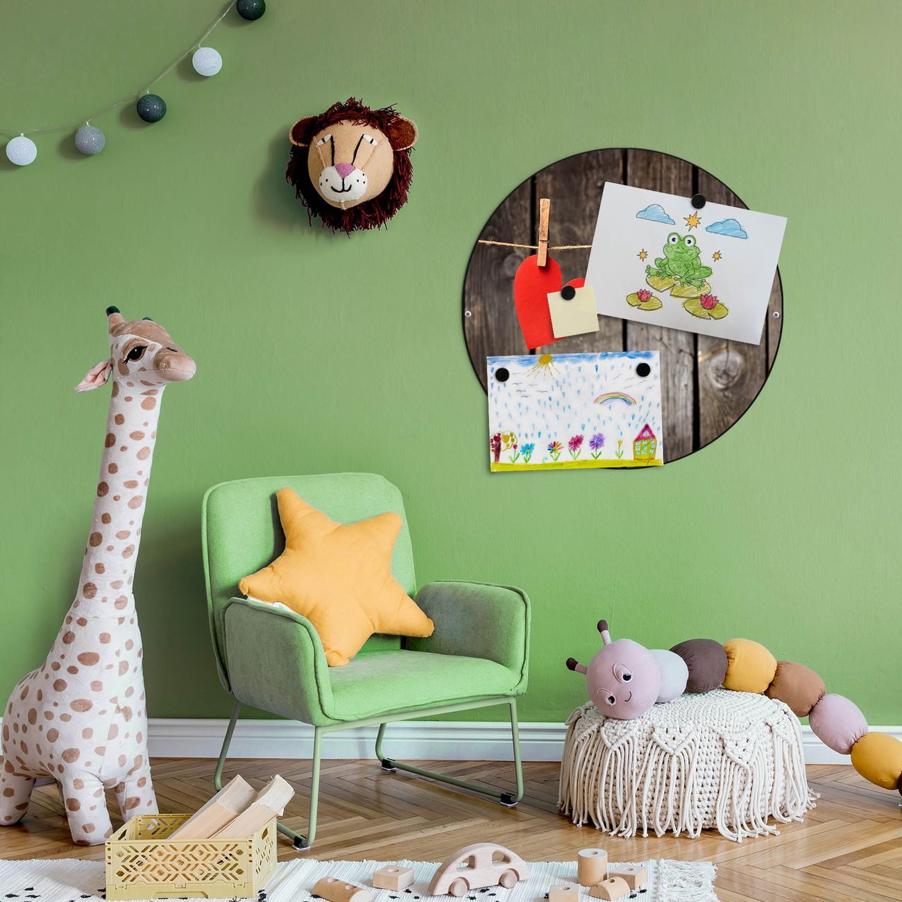 FUNKTION / DESIGN Die banjado Magnettafel mit dem Motiv Motiv Kurznachricht bringt Ordnung in Ihr Zettelchaos. Fotos, Termine, Notizen oder Rezepte lassen Sich hier stilvoll mit Magneten ordnen, Sie behalten alles im Blick. Die Design Magnetwand ist beschreibbar und wieder abwischbar. Mit dieser Pinnwand haben Sie auch ohne Notizen und Magneten ein schönes Dekoelement. Das Format bietet Ihnen ausreichend Platz um alle wichtigen Informationen im Blick zu behalten. DETAILS / NUTZEN Die magnetische Metall Pinnwand besteht aus schwarz lackiertem Stahl. Sie hat einen Durchmesser von 47cm. Es befinden sich an den Seiten zwei vorgefertigte Löcher die eine schnelle und unkomplizierte Anbringung ermöglichen. Das Motiv ist mit einem seidenmatten Laminat versehen und schützt so zusätzlich vor Kratzern. Es halten alle handelsüblichen Magneten daran. Wir sind ein kleines Team aus dem Herzen von Sachsen. Wir fertigen alle Artikel von Hand für Sie an, Sie erhalten keine preiswerte Importware. Auf Wunsch können Sie auch Ihr eigenes Foto auf die Magnettafel aufbringen, schreiben Sie uns an.