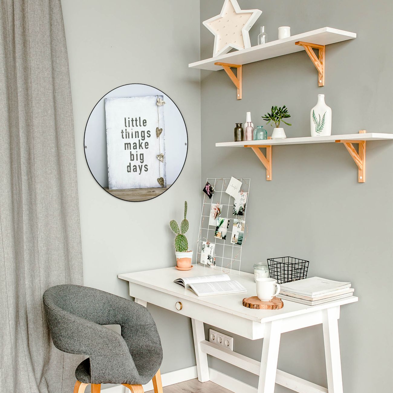 FUNKTION / DESIGN Die banjado Magnettafel mit dem Motiv Motiv Little Things bringt Ordnung in Ihr Zettelchaos. Fotos, Termine, Notizen oder Rezepte lassen Sich hier stilvoll mit Magneten ordnen, Sie behalten alles im Blick. Die Design Magnetwand ist beschreibbar und wieder abwischbar. Mit dieser Pinnwand haben Sie auch ohne Notizen und Magneten ein schönes Dekoelement. Das Format bietet Ihnen ausreichend Platz um alle wichtigen Informationen im Blick zu behalten. DETAILS / NUTZEN Die magnetische Metall Pinnwand besteht aus schwarz lackiertem Stahl. Sie hat einen Durchmesser von 47cm. Es befinden sich an den Seiten zwei vorgefertigte Löcher die eine schnelle und unkomplizierte Anbringung ermöglichen. Das Motiv ist mit einem seidenmatten Laminat versehen und schützt so zusätzlich vor Kratzern. Es halten alle handelsüblichen Magneten daran. Wir sind ein kleines Team aus dem Herzen von Sachsen. Wir fertigen alle Artikel von Hand für Sie an, Sie erhalten keine preiswerte Importware. Auf Wunsch können Sie auch Ihr eigenes Foto auf die Magnettafel aufbringen, schreiben Sie uns an.