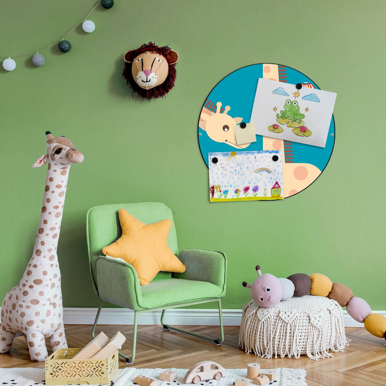 FUNKTION / DESIGN Die banjado Magnettafel mit dem Motiv Motiv Long Tall Sally bringt Ordnung in Ihr Zettelchaos. Fotos, Termine, Notizen oder Rezepte lassen Sich hier stilvoll mit Magneten ordnen, Sie behalten alles im Blick. Die Design Magnetwand ist beschreibbar und wieder abwischbar. Mit dieser Pinnwand haben Sie auch ohne Notizen und Magneten ein schönes Dekoelement. Das Format bietet Ihnen ausreichend Platz um alle wichtigen Informationen im Blick zu behalten. DETAILS / NUTZEN Die magnetische Metall Pinnwand besteht aus schwarz lackiertem Stahl. Sie hat einen Durchmesser von 47cm. Es befinden sich an den Seiten zwei vorgefertigte Löcher die eine schnelle und unkomplizierte Anbringung ermöglichen. Das Motiv ist mit einem seidenmatten Laminat versehen und schützt so zusätzlich vor Kratzern. Es halten alle handelsüblichen Magneten daran. Wir sind ein kleines Team aus dem Herzen von Sachsen. Wir fertigen alle Artikel von Hand für Sie an, Sie erhalten keine preiswerte Importware. Auf Wunsch können Sie auch Ihr eigenes Foto auf die Magnettafel aufbringen, schreiben Sie uns an.