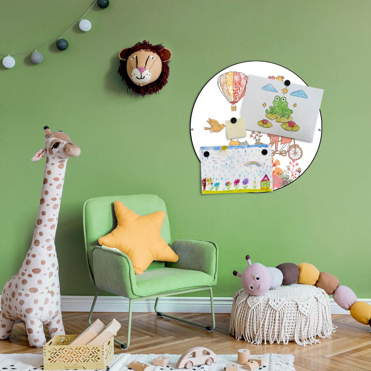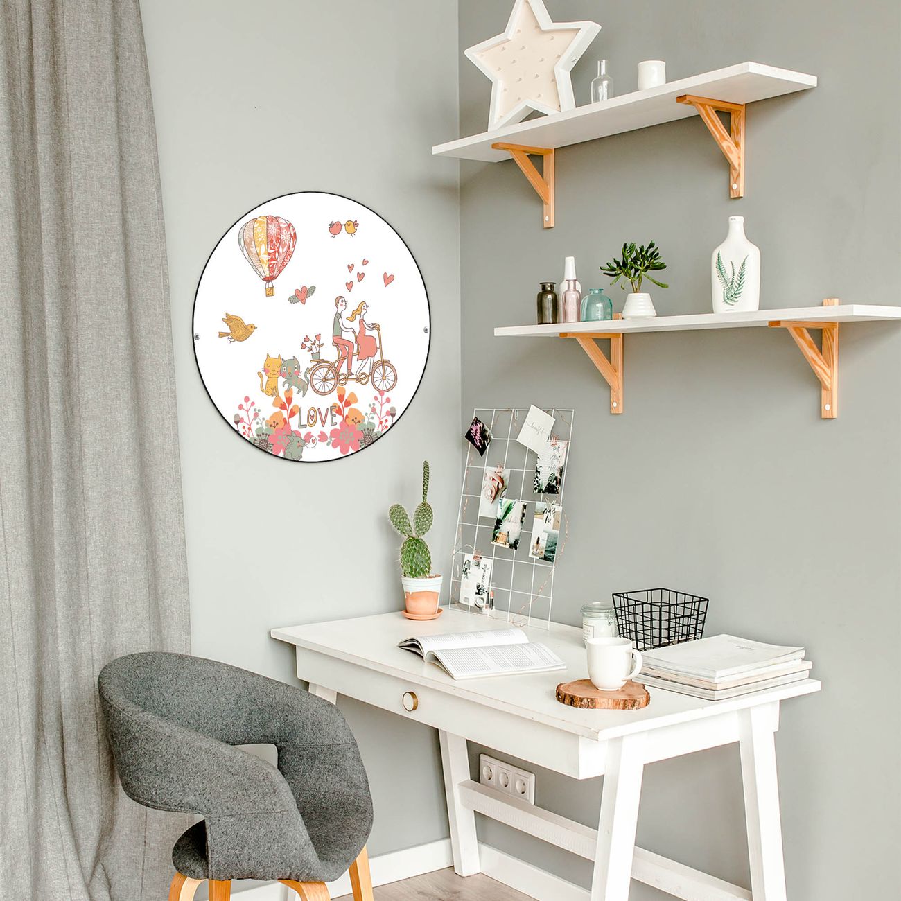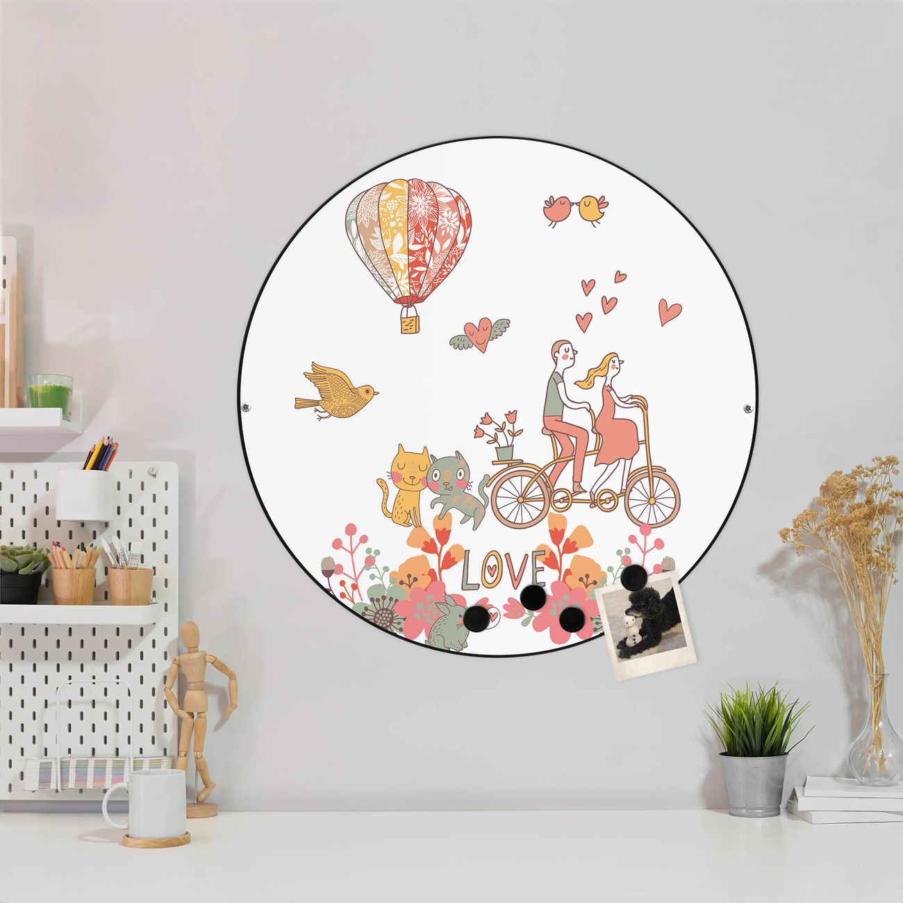FUNKTION / DESIGN Die banjado Magnettafel mit dem Motiv Motiv Love bringt Ordnung in Ihr Zettelchaos. Fotos, Termine, Notizen oder Rezepte lassen Sich hier stilvoll mit Magneten ordnen, Sie behalten alles im Blick. Die Design Magnetwand ist beschreibbar und wieder abwischbar. Mit dieser Pinnwand haben Sie auch ohne Notizen und Magneten ein schönes Dekoelement. Das Format bietet Ihnen ausreichend Platz um alle wichtigen Informationen im Blick zu behalten. DETAILS / NUTZEN Die magnetische Metall Pinnwand besteht aus schwarz lackiertem Stahl. Sie hat einen Durchmesser von 47cm. Es befinden sich an den Seiten zwei vorgefertigte Löcher die eine schnelle und unkomplizierte Anbringung ermöglichen. Das Motiv ist mit einem seidenmatten Laminat versehen und schützt so zusätzlich vor Kratzern. Es halten alle handelsüblichen Magneten daran. Wir sind ein kleines Team aus dem Herzen von Sachsen. Wir fertigen alle Artikel von Hand für Sie an, Sie erhalten keine preiswerte Importware. Auf Wunsch können Sie auch Ihr eigenes Foto auf die Magnettafel aufbringen, schreiben Sie uns an.