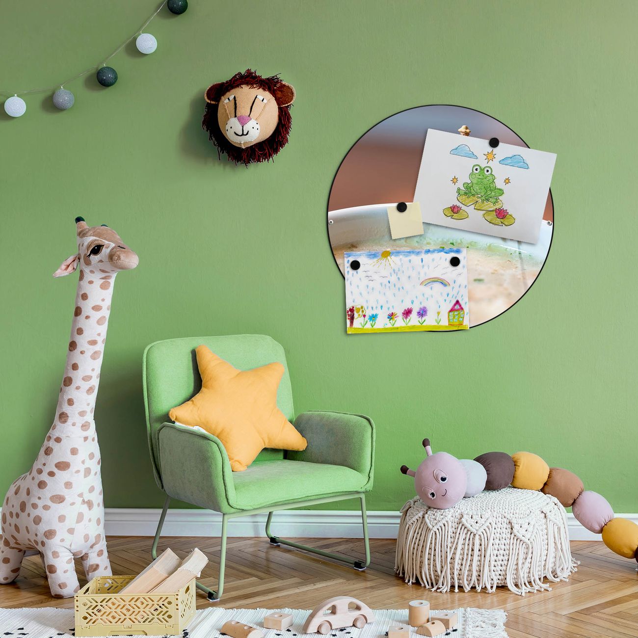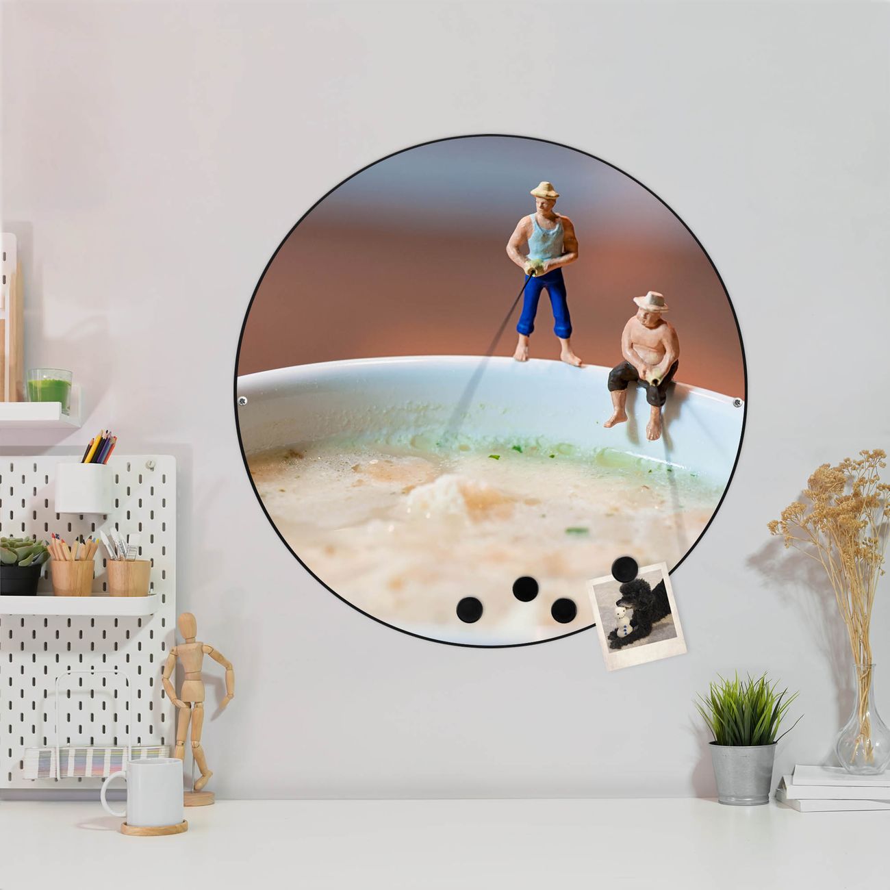 FUNKTION / DESIGN Die banjado Magnettafel mit dem Motiv Motiv Männersache bringt Ordnung in Ihr Zettelchaos. Fotos, Termine, Notizen oder Rezepte lassen Sich hier stilvoll mit Magneten ordnen, Sie behalten alles im Blick. Die Design Magnetwand ist beschreibbar und wieder abwischbar. Mit dieser Pinnwand haben Sie auch ohne Notizen und Magneten ein schönes Dekoelement. Das Format bietet Ihnen ausreichend Platz um alle wichtigen Informationen im Blick zu behalten. DETAILS / NUTZEN Die magnetische Metall Pinnwand besteht aus schwarz lackiertem Stahl. Sie hat einen Durchmesser von 47cm. Es befinden sich an den Seiten zwei vorgefertigte Löcher die eine schnelle und unkomplizierte Anbringung ermöglichen. Das Motiv ist mit einem seidenmatten Laminat versehen und schützt so zusätzlich vor Kratzern. Es halten alle handelsüblichen Magneten daran. Wir sind ein kleines Team aus dem Herzen von Sachsen. Wir fertigen alle Artikel von Hand für Sie an, Sie erhalten keine preiswerte Importware. Auf Wunsch können Sie auch Ihr eigenes Foto auf die Magnettafel aufbringen, schreiben Sie uns an.