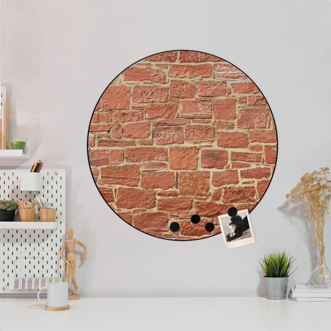 Stahl Magnettafel rund 47cm Mauerwerk