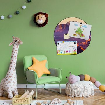 FUNKTION / DESIGN Die banjado Magnettafel mit dem Motiv Motiv Monument Valley bringt Ordnung in Ihr Zettelchaos. Fotos, Termine, Notizen oder Rezepte lassen Sich hier stilvoll mit Magneten ordnen, Sie behalten alles im Blick. Die Design Magnetwand ist beschreibbar und wieder abwischbar. Mit dieser Pinnwand haben Sie auch ohne Notizen und Magneten ein schönes Dekoelement. Das Format bietet Ihnen ausreichend Platz um alle wichtigen Informationen im Blick zu behalten. DETAILS / NUTZEN Die magnetische Metall Pinnwand besteht aus schwarz lackiertem Stahl. Sie hat einen Durchmesser von 47cm. Es befinden sich an den Seiten zwei vorgefertigte Löcher die eine schnelle und unkomplizierte Anbringung ermöglichen. Das Motiv ist mit einem seidenmatten Laminat versehen und schützt so zusätzlich vor Kratzern. Es halten alle handelsüblichen Magneten daran. Wir sind ein kleines Team aus dem Herzen von Sachsen. Wir fertigen alle Artikel von Hand für Sie an, Sie erhalten keine preiswerte Importware. Auf Wunsch können Sie auch Ihr eigenes Foto auf die Magnettafel aufbringen, schreiben Sie uns an.