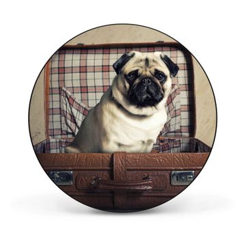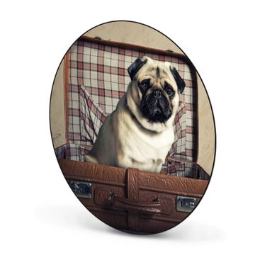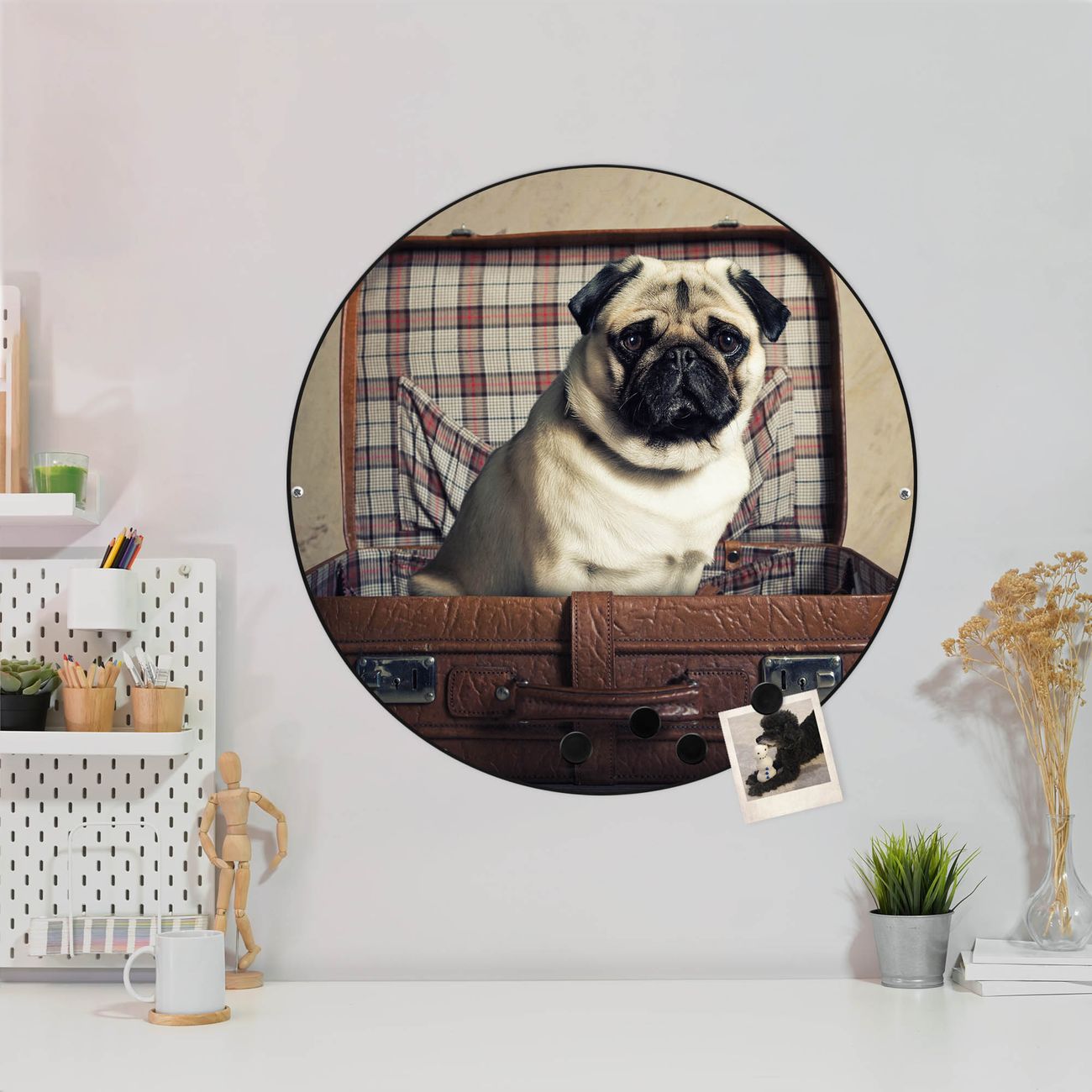Stahl Magnettafel rund 47cm Mops im Koffer