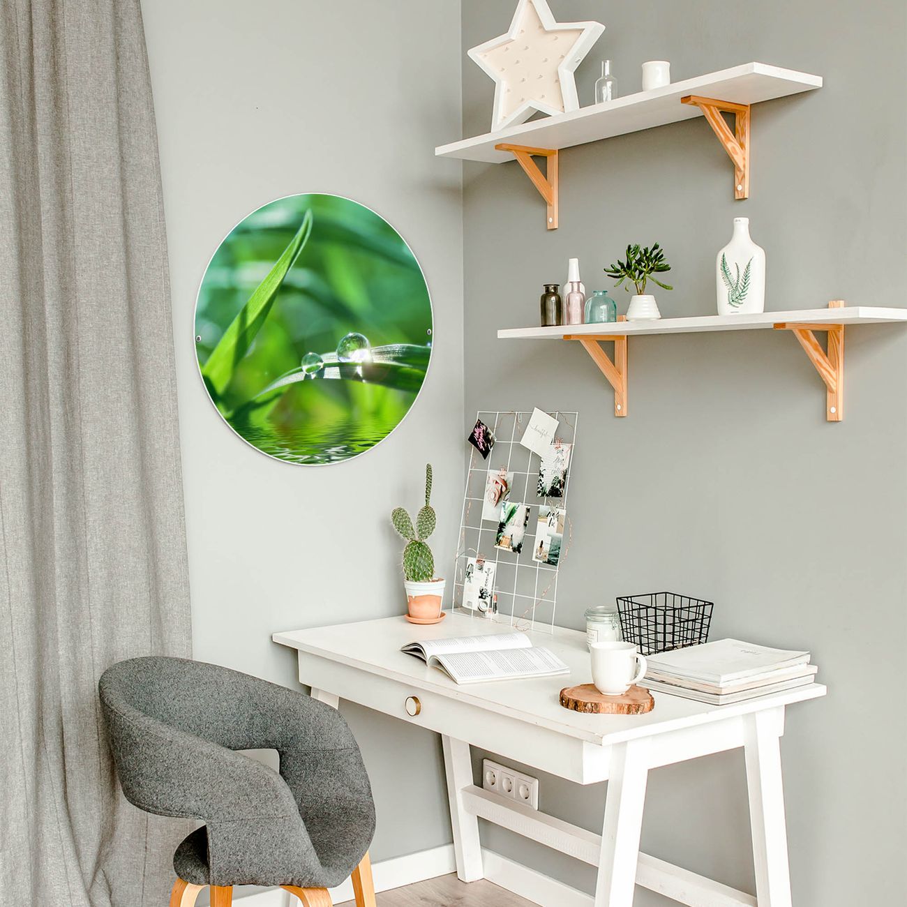 FUNKTION / DESIGN Die banjado Magnettafel mit dem Motiv Motiv Morgentau bringt Ordnung in Ihr Zettelchaos. Fotos, Termine, Notizen oder Rezepte lassen Sich hier stilvoll mit Magneten ordnen, Sie behalten alles im Blick. Die Design Magnetwand ist beschreibbar und wieder abwischbar. Mit dieser Pinnwand haben Sie auch ohne Notizen und Magneten ein schönes Dekoelement. Das Format bietet Ihnen ausreichend Platz um alle wichtigen Informationen im Blick zu behalten. DETAILS / NUTZEN Die magnetische Metall Pinnwand besteht aus weiß lackiertem Stahl. Sie hat einen Durchmesser von 47cm. Es befinden sich an den Seiten zwei vorgefertigte Löcher die eine schnelle und unkomplizierte Anbringung ermöglichen. Das Motiv ist mit einem seidenmatten Laminat versehen und schützt so zusätzlich vor Kratzern. Es halten alle handelsüblichen Magneten daran. Wir sind ein kleines Team aus dem Herzen von Sachsen. Wir fertigen alle Artikel von Hand für Sie an, Sie erhalten keine preiswerte Importware. Auf Wunsch können Sie auch Ihr eigenes Foto auf die Magnettafel aufbringen, schreiben Sie uns an.