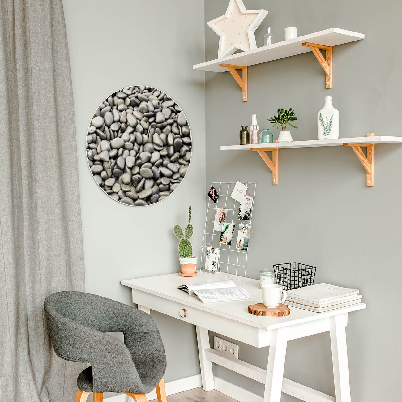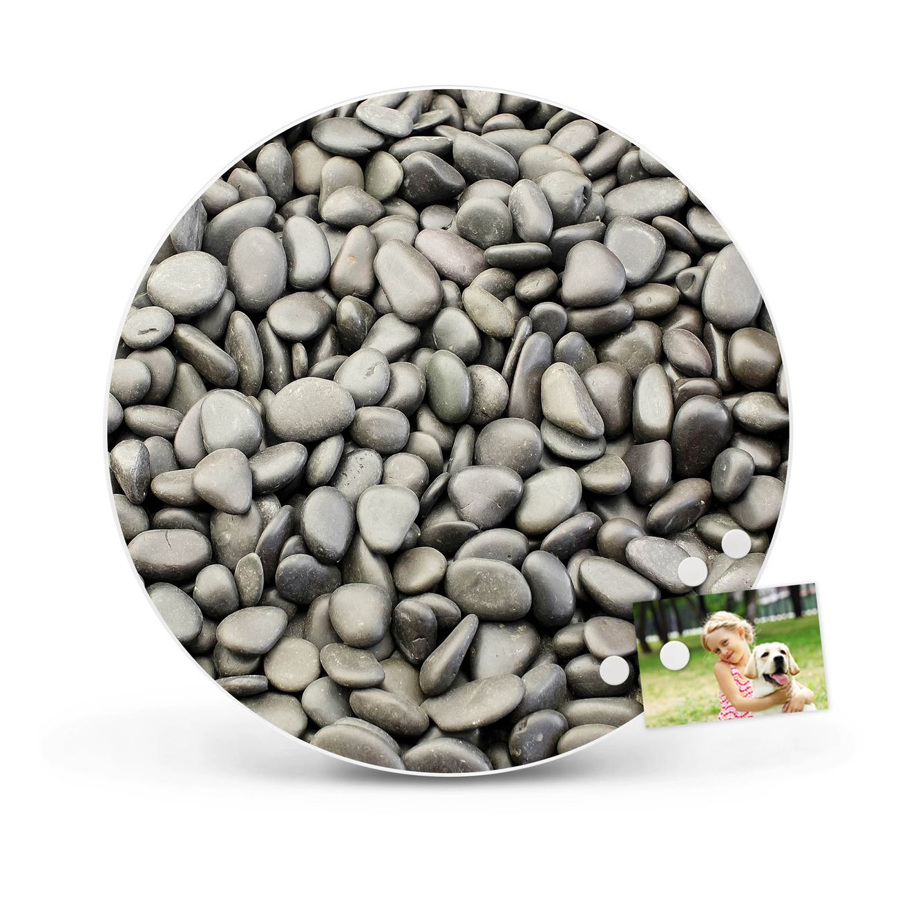 FUNKTION / DESIGN Die banjado Magnettafel mit dem Motiv Nasse Kiesel bringt Ordnung in Ihr Zettelchaos. Fotos, Termine, Notizen oder Rezepte lassen Sich hier stilvoll mit Magneten ordnen, Sie behalten alles im Blick. Die Design Magnetwand ist beschreibbar und wieder abwischbar. Mit dieser Pinnwand haben Sie auch ohne Notizen und Magneten ein schönes Dekoelement. Das Format bietet Ihnen ausreichend Platz um alle wichtigen Informationen im Blick zu behalten. DETAILS / NUTZEN Die magnetische Metall Pinnwand besteht aus weiß lackiertem Stahl. Sie hat einen Durchmesser von 47cm. Es befinden sich an den Seiten zwei vorgefertigte Löcher die eine schnelle und unkomplizierte Anbringung ermöglichen. Das Motiv ist mit einem seidenmatten Laminat versehen und schützt so zusätzlich vor Kratzern. Es halten alle handelsüblichen Magneten daran. Wir sind ein kleines Team aus dem Herzen von Sachsen. Wir fertigen alle Artikel von Hand für Sie an, Sie erhalten keine preiswerte Importware. Auf Wunsch können Sie auch Ihr eigenes Foto auf die Magnettafel aufbringen, schreiben Sie uns an.