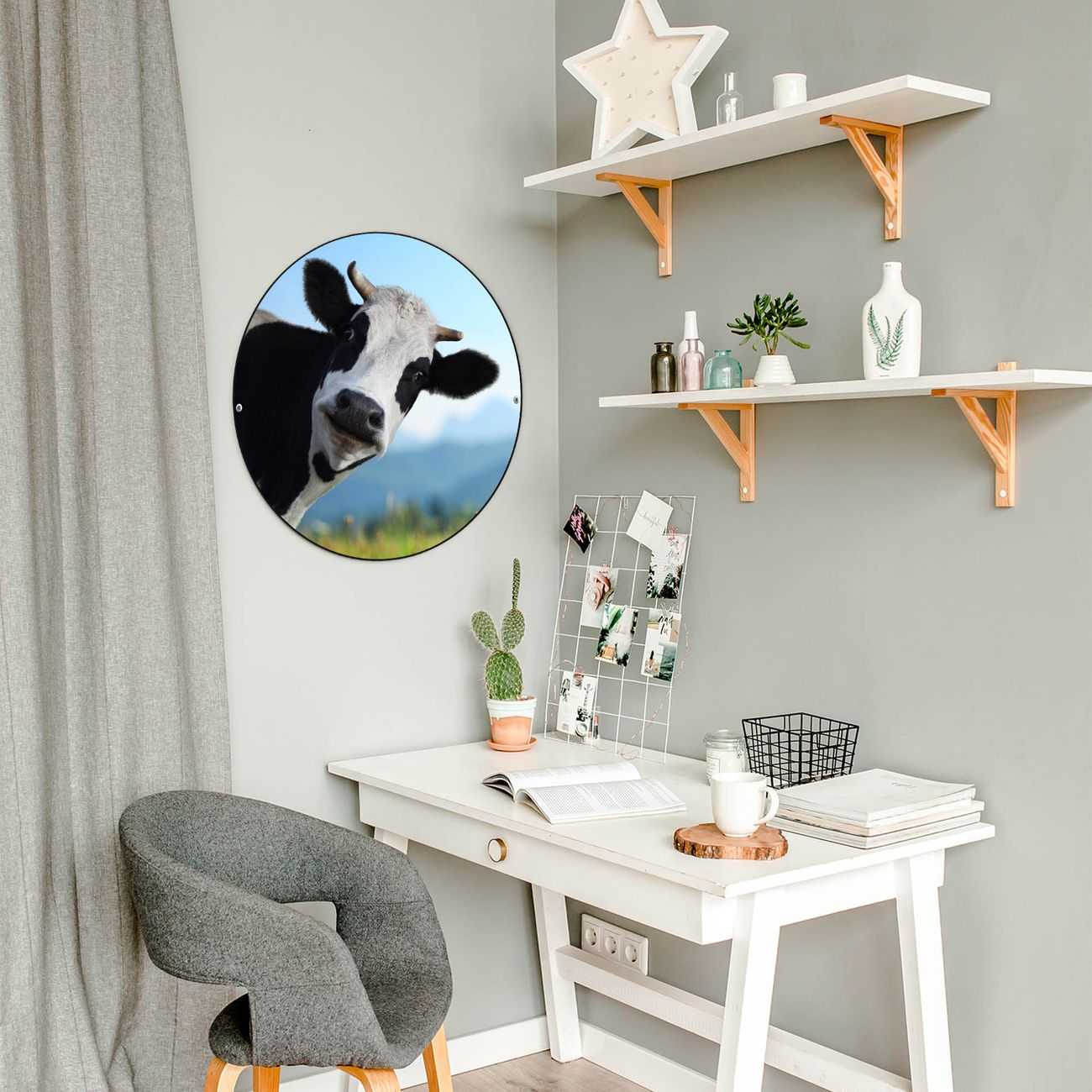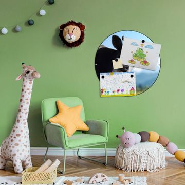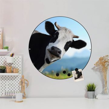 FUNKTION / DESIGN Die banjado Magnettafel mit dem Motiv Motiv Neugierig bringt Ordnung in Ihr Zettelchaos. Fotos, Termine, Notizen oder Rezepte lassen Sich hier stilvoll mit Magneten ordnen, Sie behalten alles im Blick. Die Design Magnetwand ist beschreibbar und wieder abwischbar. Mit dieser Pinnwand haben Sie auch ohne Notizen und Magneten ein schönes Dekoelement. Das Format bietet Ihnen ausreichend Platz um alle wichtigen Informationen im Blick zu behalten. DETAILS / NUTZEN Die magnetische Metall Pinnwand besteht aus schwarz lackiertem Stahl. Sie hat einen Durchmesser von 47cm. Es befinden sich an den Seiten zwei vorgefertigte Löcher die eine schnelle und unkomplizierte Anbringung ermöglichen. Das Motiv ist mit einem seidenmatten Laminat versehen und schützt so zusätzlich vor Kratzern. Es halten alle handelsüblichen Magneten daran. Wir sind ein kleines Team aus dem Herzen von Sachsen. Wir fertigen alle Artikel von Hand für Sie an, Sie erhalten keine preiswerte Importware. Auf Wunsch können Sie auch Ihr eigenes Foto auf die Magnettafel aufbringen, schreiben Sie uns an.