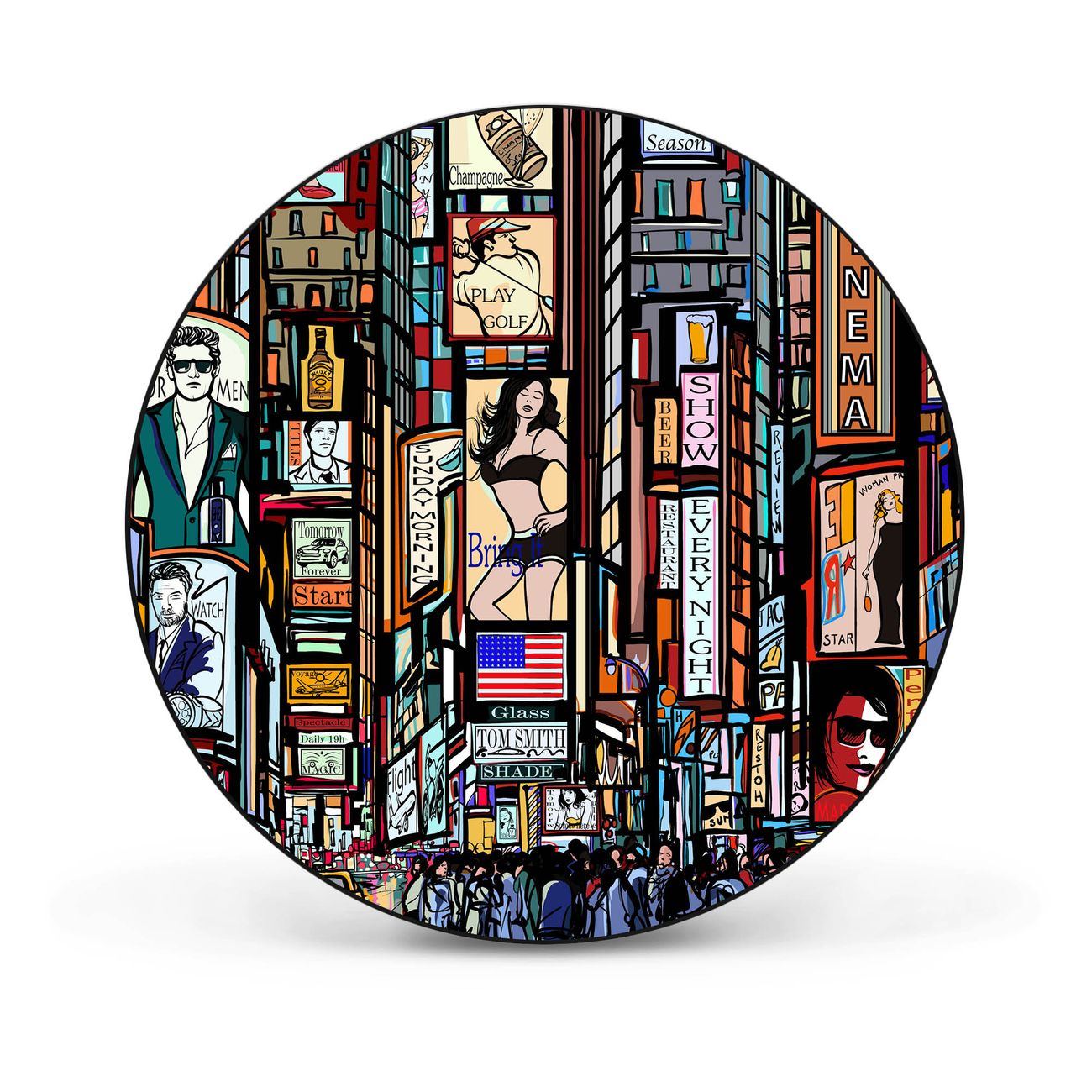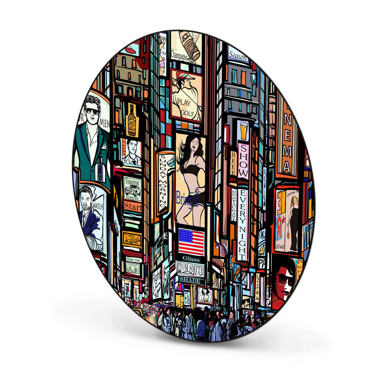Motiv New York Show Nr. 11145 Material: Stahl schwarz lackiert, Premiumfolie Dekorfolie: UV-beständig, mit Schutzlaminat Gesamtgröße: 47x47x0,2cm BxHxT Gewicht: ca. 1,25 kg Magnete: für Dekomagnete geeignet beschreibbar: nein Zubehör: 4 Magnete, 2 Schrauben und Dübel