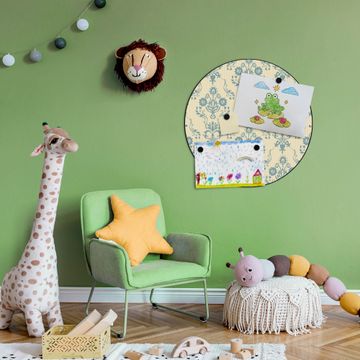 FUNKTION / DESIGN Die banjado Magnettafel mit dem Motiv Motiv Nostalgische Stimmung bringt Ordnung in Ihr Zettelchaos. Fotos, Termine, Notizen oder Rezepte lassen Sich hier stilvoll mit Magneten ordnen, Sie behalten alles im Blick. Die Design Magnetwand ist beschreibbar und wieder abwischbar. Mit dieser Pinnwand haben Sie auch ohne Notizen und Magneten ein schönes Dekoelement. Das Format bietet Ihnen ausreichend Platz um alle wichtigen Informationen im Blick zu behalten. DETAILS / NUTZEN Die magnetische Metall Pinnwand besteht aus schwarz lackiertem Stahl. Sie hat einen Durchmesser von 47cm. Es befinden sich an den Seiten zwei vorgefertigte Löcher die eine schnelle und unkomplizierte Anbringung ermöglichen. Das Motiv ist mit einem seidenmatten Laminat versehen und schützt so zusätzlich vor Kratzern. Es halten alle handelsüblichen Magneten daran. Wir sind ein kleines Team aus dem Herzen von Sachsen. Wir fertigen alle Artikel von Hand für Sie an, Sie erhalten keine preiswerte Importware. Auf Wunsch können Sie auch Ihr eigenes Foto auf die Magnettafel aufbringen, schreiben Sie uns an.