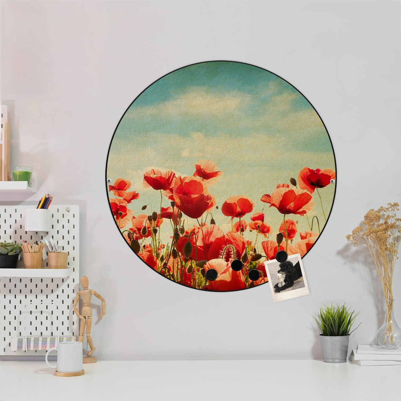 Stahl Magnettafel rund 47cm Oktobermohn