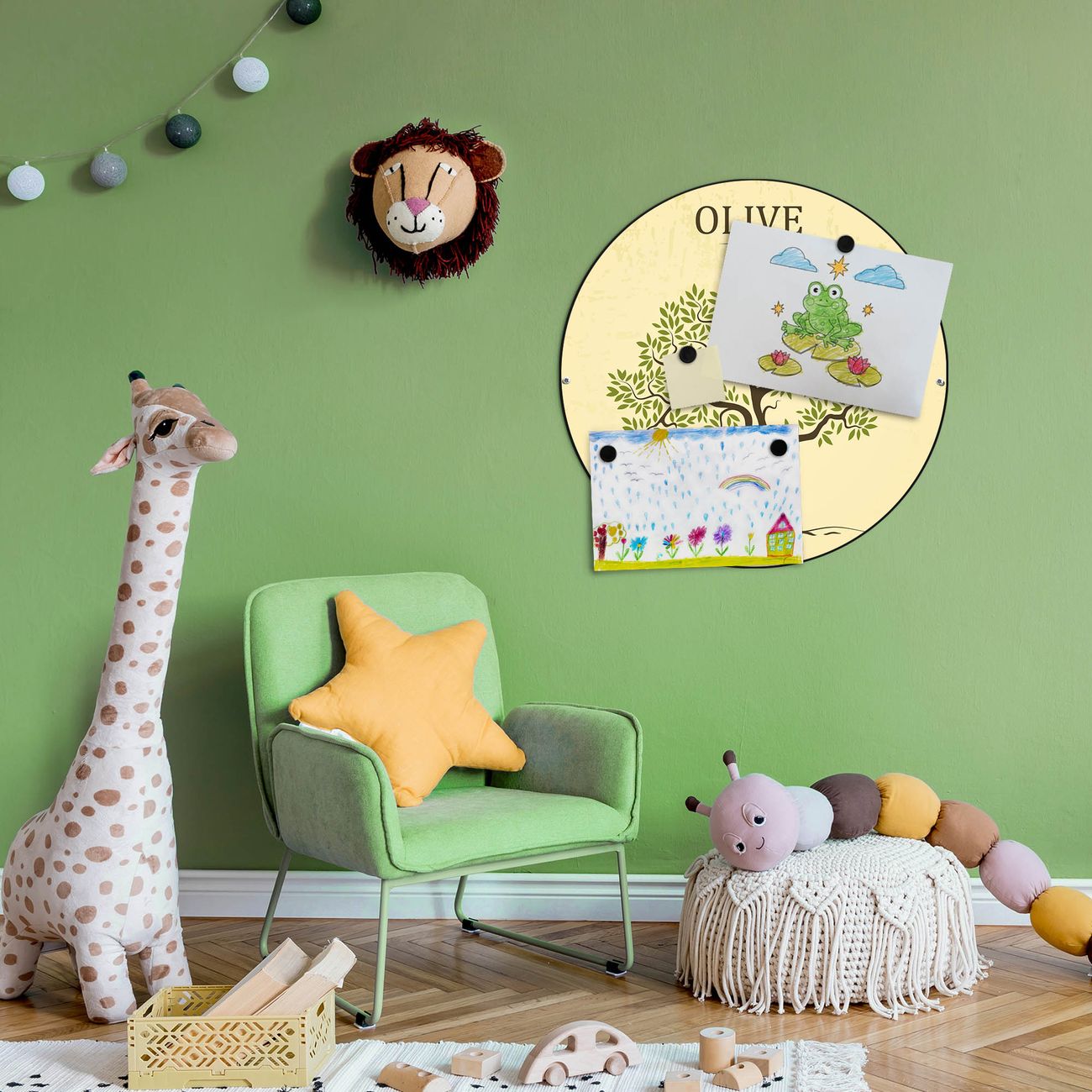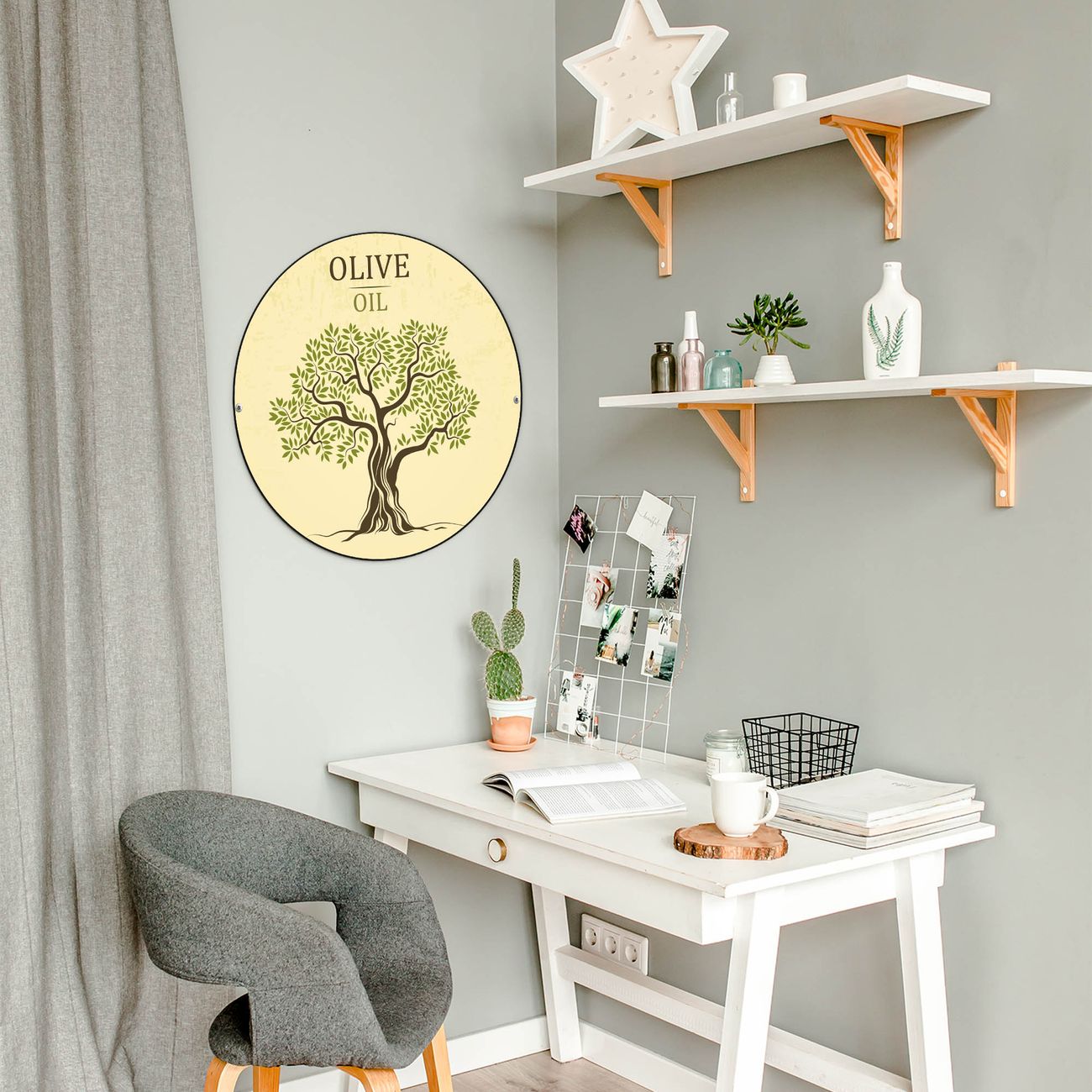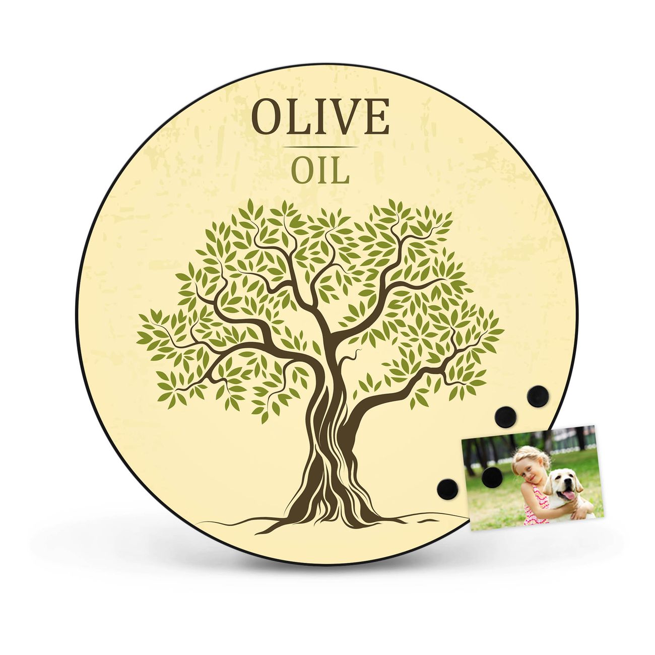 FUNKTION / DESIGN Die banjado Magnettafel mit dem Motiv Motiv Olivenbaum bringt Ordnung in Ihr Zettelchaos. Fotos, Termine, Notizen oder Rezepte lassen Sich hier stilvoll mit Magneten ordnen, Sie behalten alles im Blick. Die Design Magnetwand ist beschreibbar und wieder abwischbar. Mit dieser Pinnwand haben Sie auch ohne Notizen und Magneten ein schönes Dekoelement. Das Format bietet Ihnen ausreichend Platz um alle wichtigen Informationen im Blick zu behalten. DETAILS / NUTZEN Die magnetische Metall Pinnwand besteht aus schwarz lackiertem Stahl. Sie hat einen Durchmesser von 47cm. Es befinden sich an den Seiten zwei vorgefertigte Löcher die eine schnelle und unkomplizierte Anbringung ermöglichen. Das Motiv ist mit einem seidenmatten Laminat versehen und schützt so zusätzlich vor Kratzern. Es halten alle handelsüblichen Magneten daran. Wir sind ein kleines Team aus dem Herzen von Sachsen. Wir fertigen alle Artikel von Hand für Sie an, Sie erhalten keine preiswerte Importware. Auf Wunsch können Sie auch Ihr eigenes Foto auf die Magnettafel aufbringen, schreiben Sie uns an.