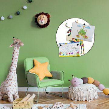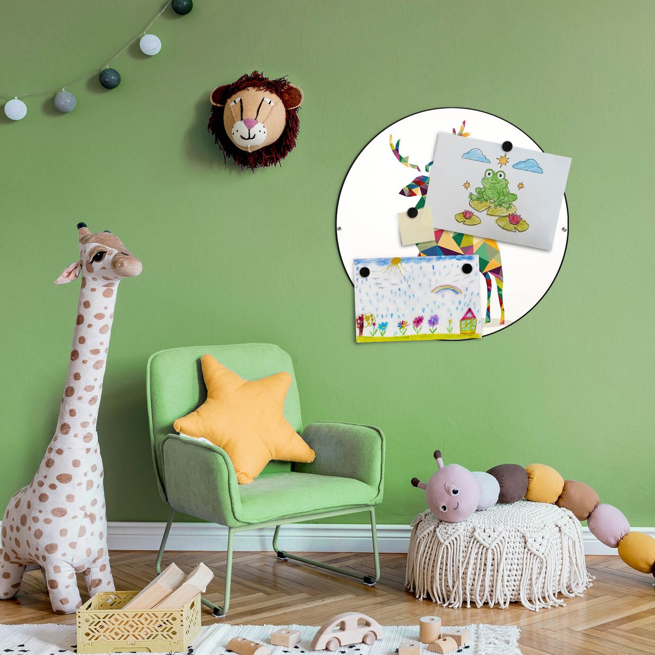 FUNKTION / DESIGN Die banjado Magnettafel mit dem Motiv Motiv Origami Hirsch bringt Ordnung in Ihr Zettelchaos. Fotos, Termine, Notizen oder Rezepte lassen Sich hier stilvoll mit Magneten ordnen, Sie behalten alles im Blick. Die Design Magnetwand ist beschreibbar und wieder abwischbar. Mit dieser Pinnwand haben Sie auch ohne Notizen und Magneten ein schönes Dekoelement. Das Format bietet Ihnen ausreichend Platz um alle wichtigen Informationen im Blick zu behalten. DETAILS / NUTZEN Die magnetische Metall Pinnwand besteht aus schwarz lackiertem Stahl. Sie hat einen Durchmesser von 47cm. Es befinden sich an den Seiten zwei vorgefertigte Löcher die eine schnelle und unkomplizierte Anbringung ermöglichen. Das Motiv ist mit einem seidenmatten Laminat versehen und schützt so zusätzlich vor Kratzern. Es halten alle handelsüblichen Magneten daran. Wir sind ein kleines Team aus dem Herzen von Sachsen. Wir fertigen alle Artikel von Hand für Sie an, Sie erhalten keine preiswerte Importware. Auf Wunsch können Sie auch Ihr eigenes Foto auf die Magnettafel aufbringen, schreiben Sie uns an.