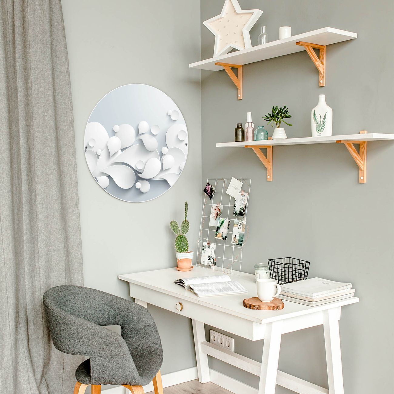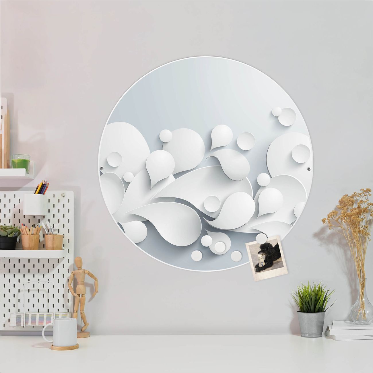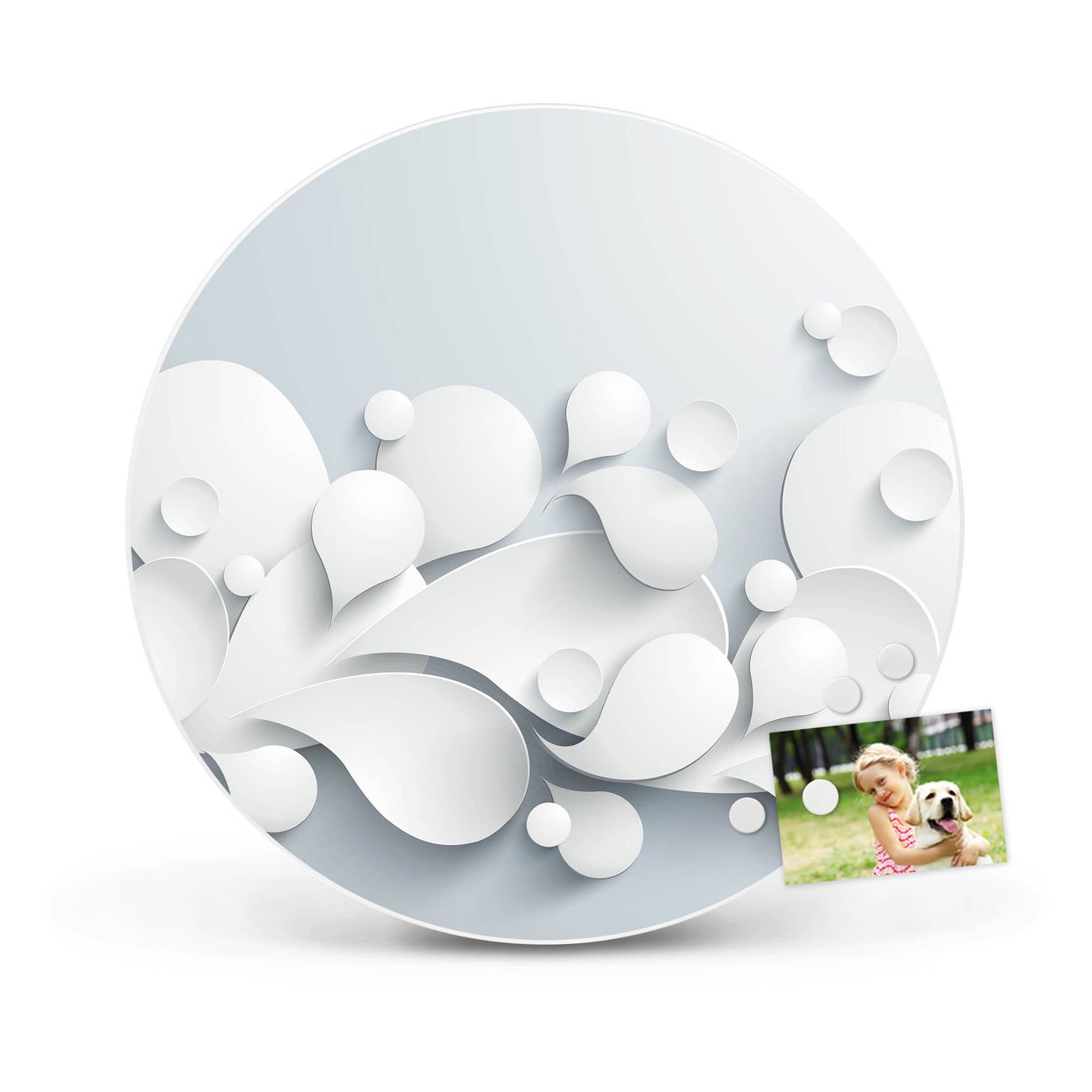 FUNKTION / DESIGN Die banjado Magnettafel mit dem Motiv Motiv Papiertropfen bringt Ordnung in Ihr Zettelchaos. Fotos, Termine, Notizen oder Rezepte lassen Sich hier stilvoll mit Magneten ordnen, Sie behalten alles im Blick. Die Design Magnetwand ist beschreibbar und wieder abwischbar. Mit dieser Pinnwand haben Sie auch ohne Notizen und Magneten ein schönes Dekoelement. Das Format bietet Ihnen ausreichend Platz um alle wichtigen Informationen im Blick zu behalten. DETAILS / NUTZEN Die magnetische Metall Pinnwand besteht aus weiß lackiertem Stahl. Sie hat einen Durchmesser von 47cm. Es befinden sich an den Seiten zwei vorgefertigte Löcher die eine schnelle und unkomplizierte Anbringung ermöglichen. Das Motiv ist mit einem seidenmatten Laminat versehen und schützt so zusätzlich vor Kratzern. Es halten alle handelsüblichen Magneten daran. Wir sind ein kleines Team aus dem Herzen von Sachsen. Wir fertigen alle Artikel von Hand für Sie an, Sie erhalten keine preiswerte Importware. Auf Wunsch können Sie auch Ihr eigenes Foto auf die Magnettafel aufbringen, schreiben Sie uns an.