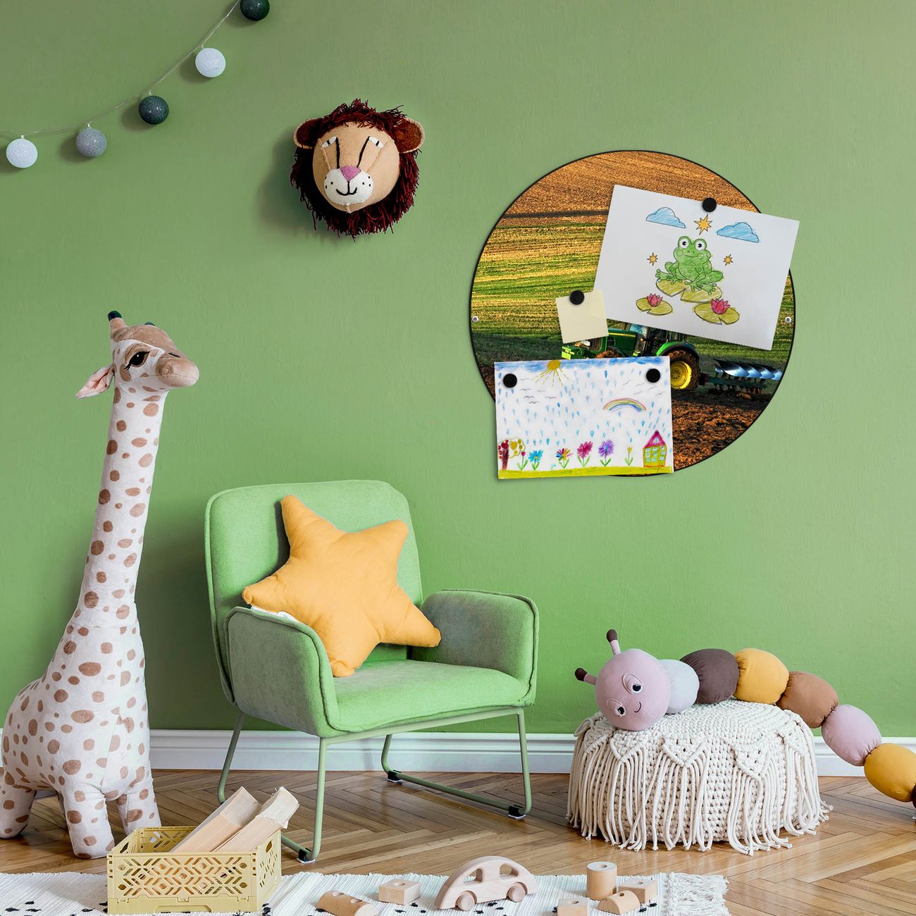 FUNKTION / DESIGN Die banjado Magnettafel mit dem Motiv Motiv Pflügen bringt Ordnung in Ihr Zettelchaos. Fotos, Termine, Notizen oder Rezepte lassen Sich hier stilvoll mit Magneten ordnen, Sie behalten alles im Blick. Die Design Magnetwand ist beschreibbar und wieder abwischbar. Mit dieser Pinnwand haben Sie auch ohne Notizen und Magneten ein schönes Dekoelement. Das Format bietet Ihnen ausreichend Platz um alle wichtigen Informationen im Blick zu behalten. DETAILS / NUTZEN Die magnetische Metall Pinnwand besteht aus schwarz lackiertem Stahl. Sie hat einen Durchmesser von 47cm. Es befinden sich an den Seiten zwei vorgefertigte Löcher die eine schnelle und unkomplizierte Anbringung ermöglichen. Das Motiv ist mit einem seidenmatten Laminat versehen und schützt so zusätzlich vor Kratzern. Es halten alle handelsüblichen Magneten daran. Wir sind ein kleines Team aus dem Herzen von Sachsen. Wir fertigen alle Artikel von Hand für Sie an, Sie erhalten keine preiswerte Importware. Auf Wunsch können Sie auch Ihr eigenes Foto auf die Magnettafel aufbringen, schreiben Sie uns an.