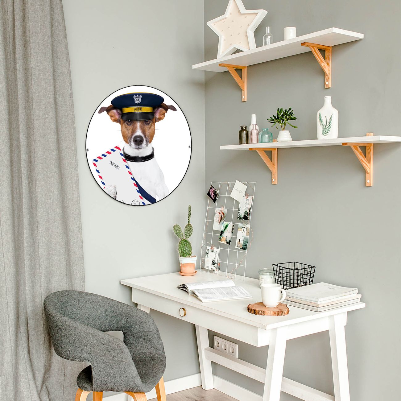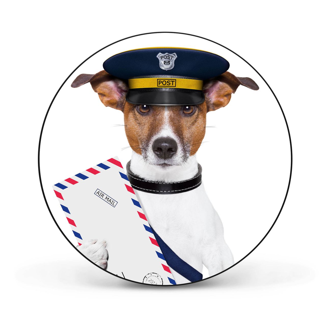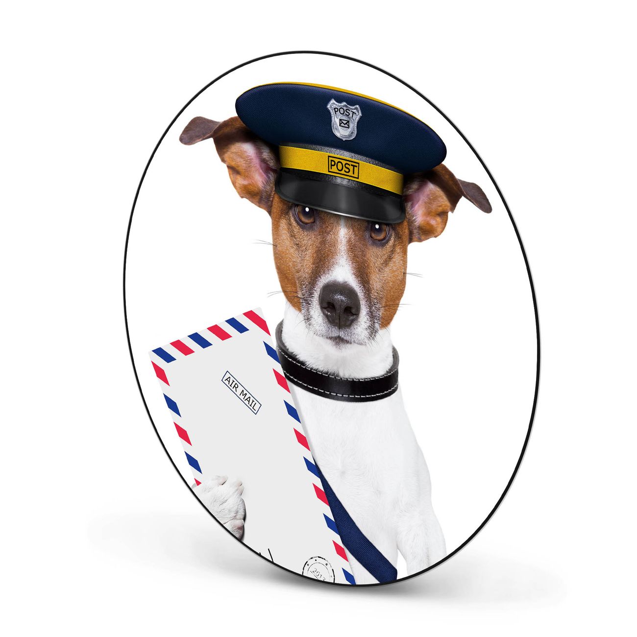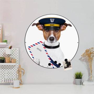 Stahl Magnettafel rund 47cm Postbote Jack Russel