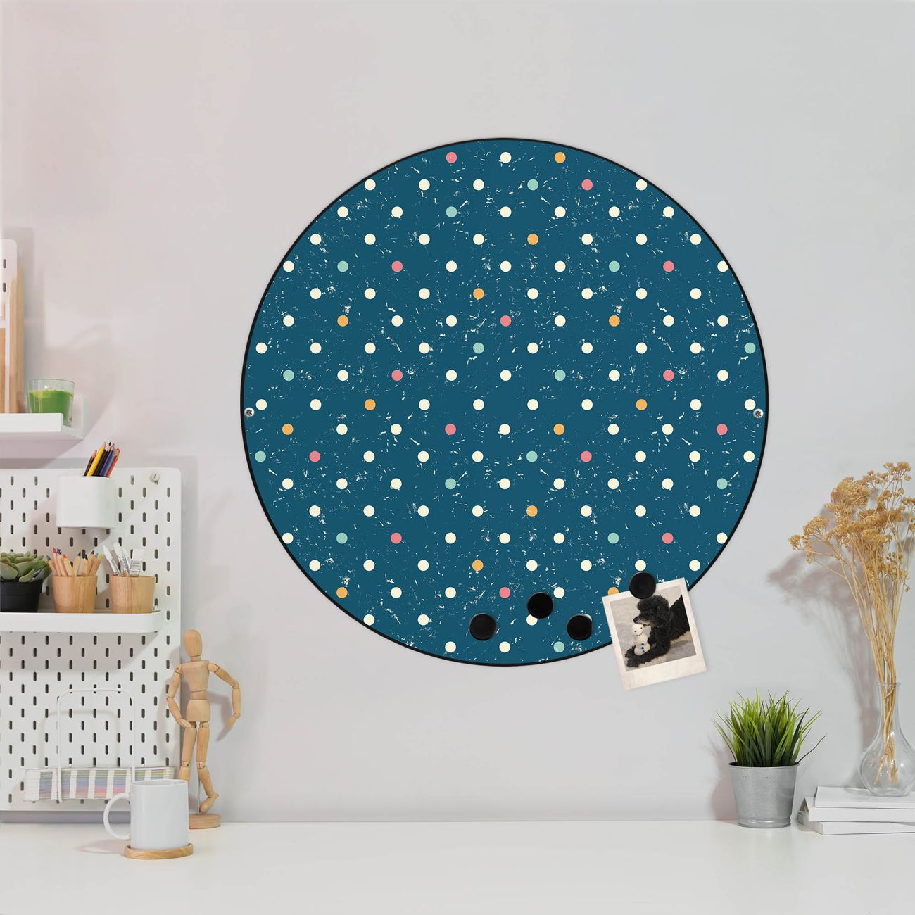 Stahl Magnettafel rund 47cm Punkte auf Blau