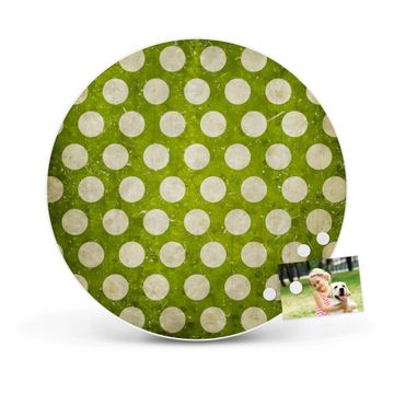 Stahl Magnettafel rund 47cm Punkte Grün Vintage