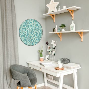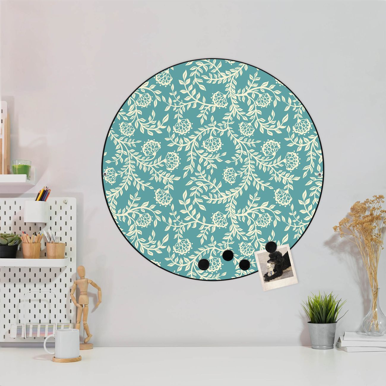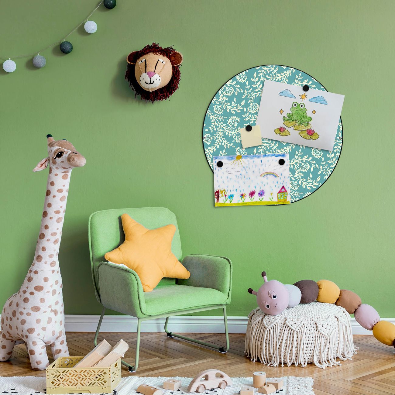 FUNKTION / DESIGN Die banjado Magnettafel mit dem Motiv Motiv Rankenornament bringt Ordnung in Ihr Zettelchaos. Fotos, Termine, Notizen oder Rezepte lassen Sich hier stilvoll mit Magneten ordnen, Sie behalten alles im Blick. Die Design Magnetwand ist beschreibbar und wieder abwischbar. Mit dieser Pinnwand haben Sie auch ohne Notizen und Magneten ein schönes Dekoelement. Das Format bietet Ihnen ausreichend Platz um alle wichtigen Informationen im Blick zu behalten. DETAILS / NUTZEN Die magnetische Metall Pinnwand besteht aus schwarz lackiertem Stahl. Sie hat einen Durchmesser von 47cm. Es befinden sich an den Seiten zwei vorgefertigte Löcher die eine schnelle und unkomplizierte Anbringung ermöglichen. Das Motiv ist mit einem seidenmatten Laminat versehen und schützt so zusätzlich vor Kratzern. Es halten alle handelsüblichen Magneten daran. Wir sind ein kleines Team aus dem Herzen von Sachsen. Wir fertigen alle Artikel von Hand für Sie an, Sie erhalten keine preiswerte Importware. Auf Wunsch können Sie auch Ihr eigenes Foto auf die Magnettafel aufbringen, schreiben Sie uns an.