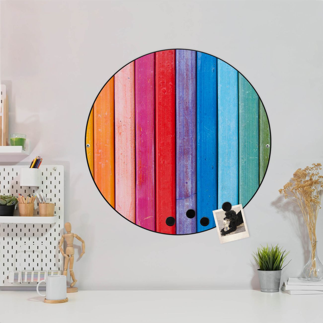 Stahl Magnettafel rund 47cm Regenbogenfarben