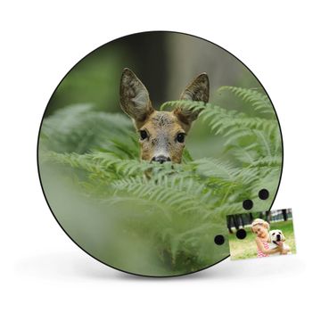 FUNKTION / DESIGN Die banjado Magnettafel mit dem Motiv Motiv Reh bringt Ordnung in Ihr Zettelchaos. Fotos, Termine, Notizen oder Rezepte lassen Sich hier stilvoll mit Magneten ordnen, Sie behalten alles im Blick. Die Design Magnetwand ist beschreibbar und wieder abwischbar. Mit dieser Pinnwand haben Sie auch ohne Notizen und Magneten ein schönes Dekoelement. Das Format bietet Ihnen ausreichend Platz um alle wichtigen Informationen im Blick zu behalten. DETAILS / NUTZEN Die magnetische Metall Pinnwand besteht aus schwarz lackiertem Stahl. Sie hat einen Durchmesser von 47cm. Es befinden sich an den Seiten zwei vorgefertigte Löcher die eine schnelle und unkomplizierte Anbringung ermöglichen. Das Motiv ist mit einem seidenmatten Laminat versehen und schützt so zusätzlich vor Kratzern. Es halten alle handelsüblichen Magneten daran. Wir sind ein kleines Team aus dem Herzen von Sachsen. Wir fertigen alle Artikel von Hand für Sie an, Sie erhalten keine preiswerte Importware. Auf Wunsch können Sie auch Ihr eigenes Foto auf die Magnettafel aufbringen, schreiben Sie uns an.