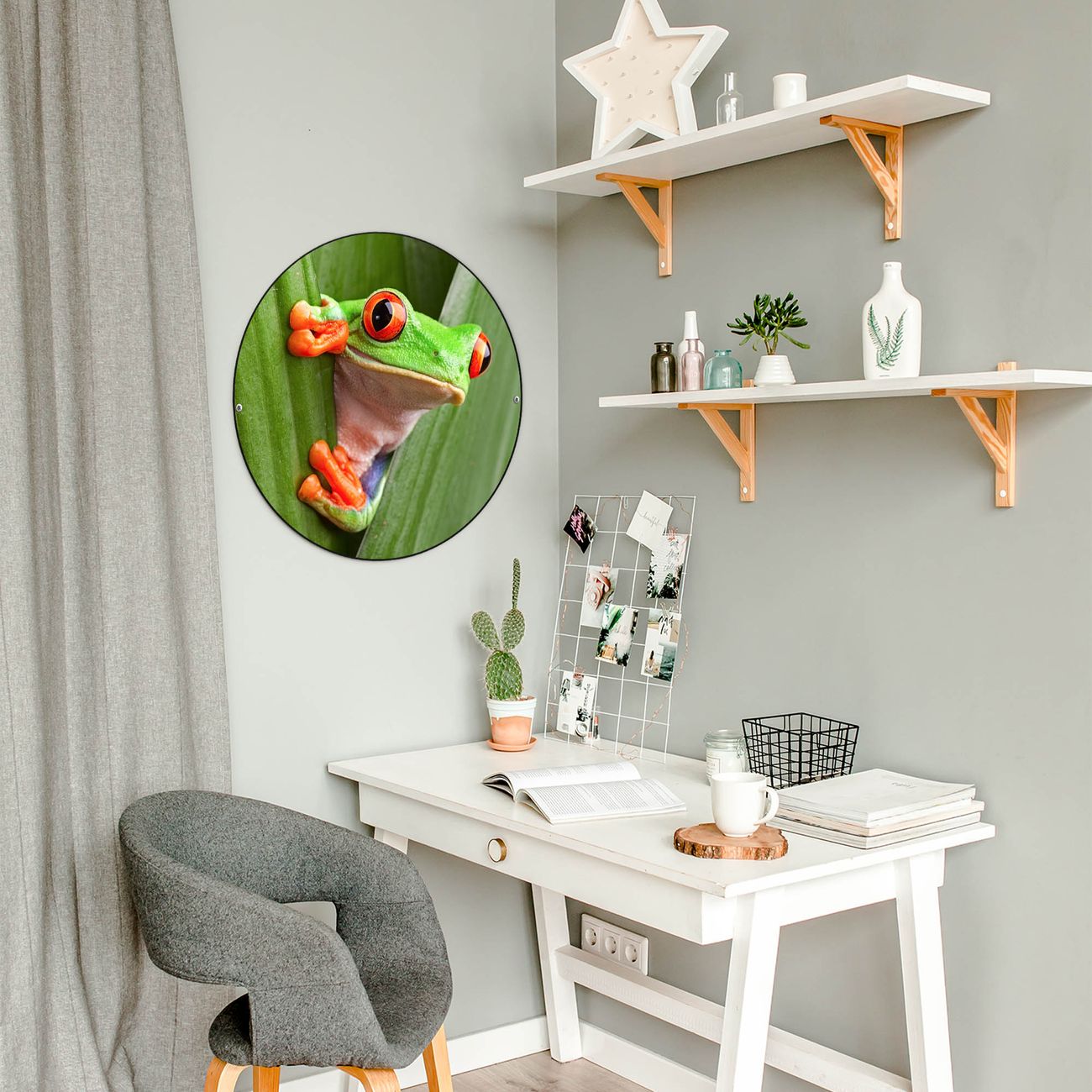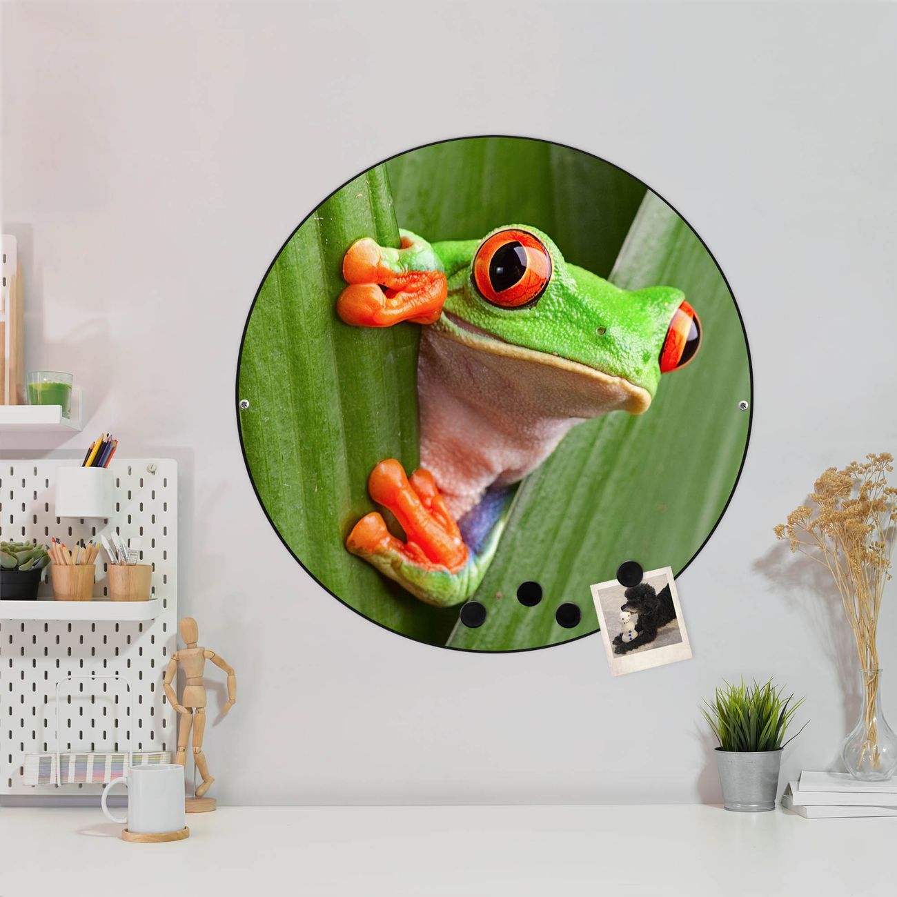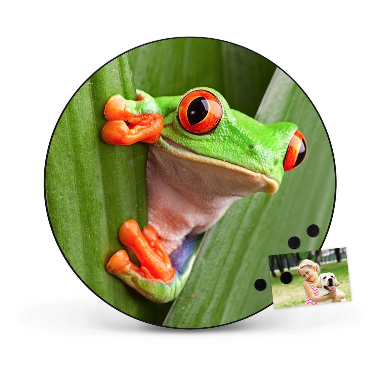 FUNKTION / DESIGN Die banjado Magnettafel mit dem Motiv Motiv Robin bringt Ordnung in Ihr Zettelchaos. Fotos, Termine, Notizen oder Rezepte lassen Sich hier stilvoll mit Magneten ordnen, Sie behalten alles im Blick. Die Design Magnetwand ist beschreibbar und wieder abwischbar. Mit dieser Pinnwand haben Sie auch ohne Notizen und Magneten ein schönes Dekoelement. Das Format bietet Ihnen ausreichend Platz um alle wichtigen Informationen im Blick zu behalten. DETAILS / NUTZEN Die magnetische Metall Pinnwand besteht aus schwarz lackiertem Stahl. Sie hat einen Durchmesser von 47cm. Es befinden sich an den Seiten zwei vorgefertigte Löcher die eine schnelle und unkomplizierte Anbringung ermöglichen. Das Motiv ist mit einem seidenmatten Laminat versehen und schützt so zusätzlich vor Kratzern. Es halten alle handelsüblichen Magneten daran. Wir sind ein kleines Team aus dem Herzen von Sachsen. Wir fertigen alle Artikel von Hand für Sie an, Sie erhalten keine preiswerte Importware. Auf Wunsch können Sie auch Ihr eigenes Foto auf die Magnettafel aufbringen, schreiben Sie uns an.