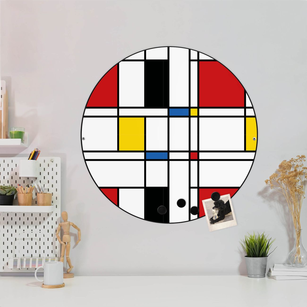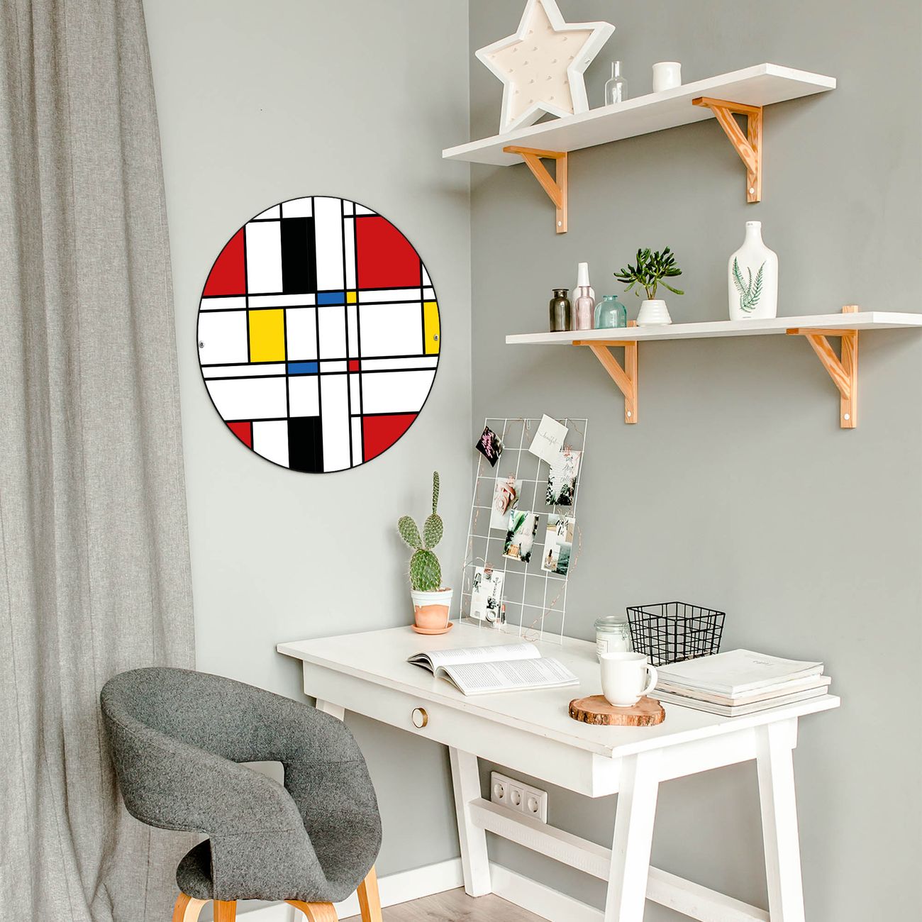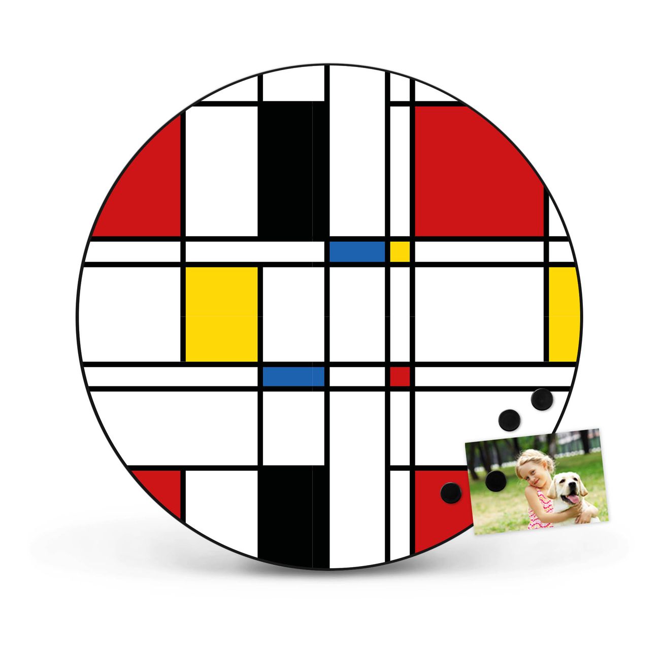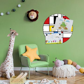 FUNKTION / DESIGN Die banjado Magnettafel mit dem Motiv Motiv Rot Gelb Blau bringt Ordnung in Ihr Zettelchaos. Fotos, Termine, Notizen oder Rezepte lassen Sich hier stilvoll mit Magneten ordnen, Sie behalten alles im Blick. Die Design Magnetwand ist beschreibbar und wieder abwischbar. Mit dieser Pinnwand haben Sie auch ohne Notizen und Magneten ein schönes Dekoelement. Das Format bietet Ihnen ausreichend Platz um alle wichtigen Informationen im Blick zu behalten. DETAILS / NUTZEN Die magnetische Metall Pinnwand besteht aus schwarz lackiertem Stahl. Sie hat einen Durchmesser von 47cm. Es befinden sich an den Seiten zwei vorgefertigte Löcher die eine schnelle und unkomplizierte Anbringung ermöglichen. Das Motiv ist mit einem seidenmatten Laminat versehen und schützt so zusätzlich vor Kratzern. Es halten alle handelsüblichen Magneten daran. Wir sind ein kleines Team aus dem Herzen von Sachsen. Wir fertigen alle Artikel von Hand für Sie an, Sie erhalten keine preiswerte Importware. Auf Wunsch können Sie auch Ihr eigenes Foto auf die Magnettafel aufbringen, schreiben Sie uns an.