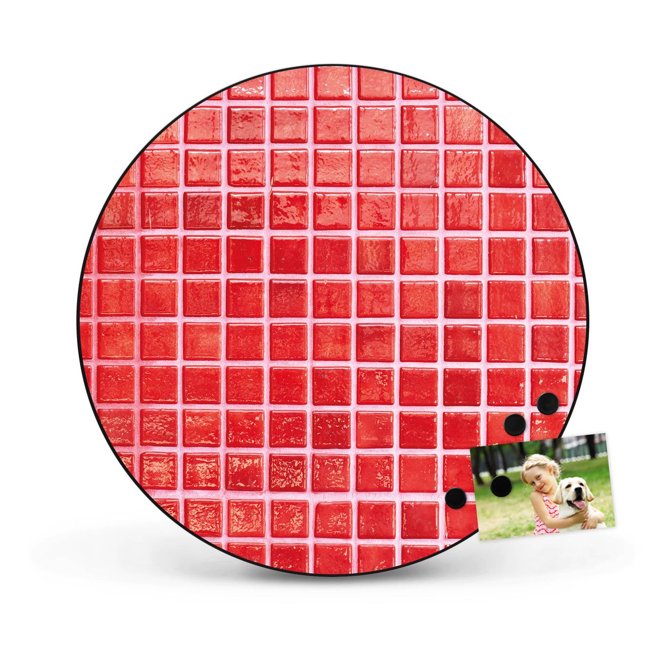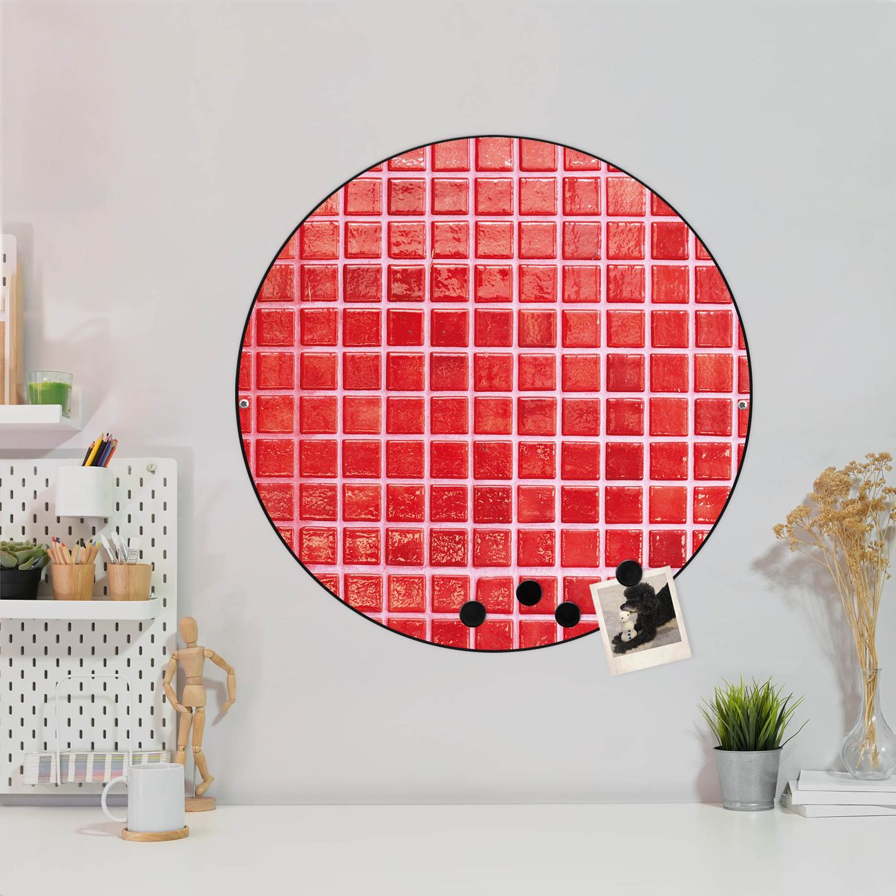 Stahl Magnettafel rund 47cm Rote Kacheln