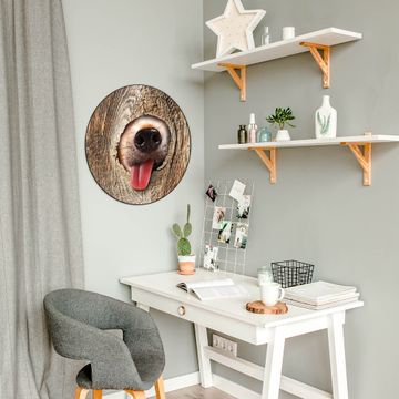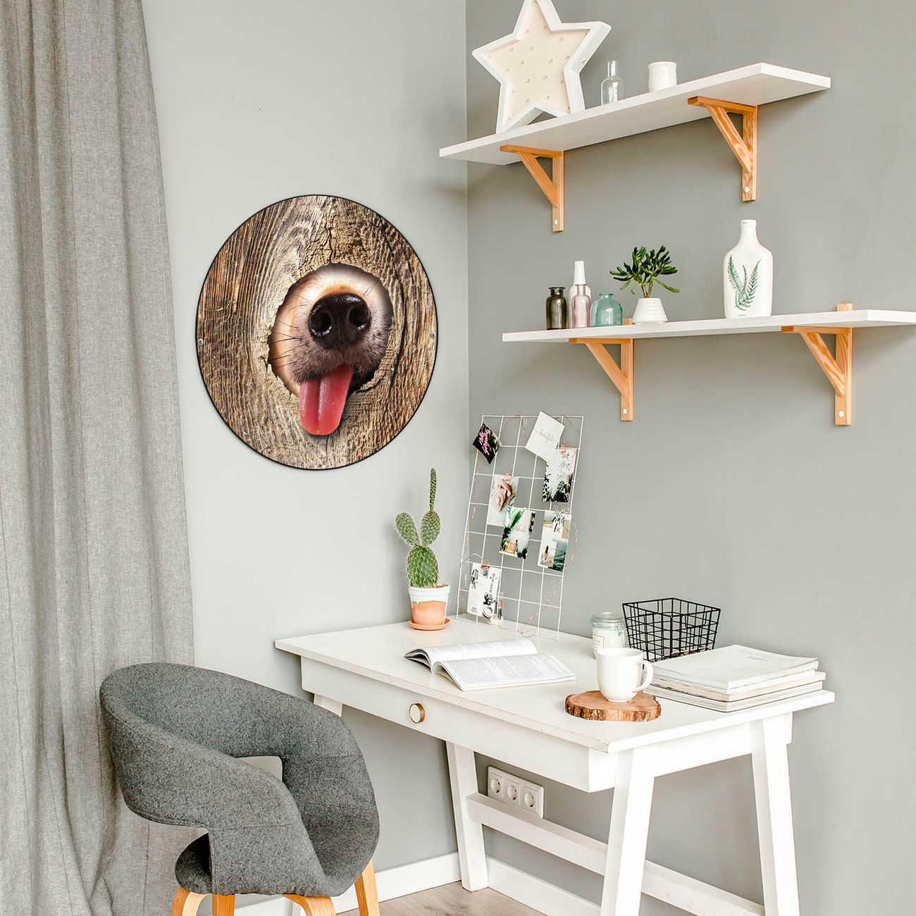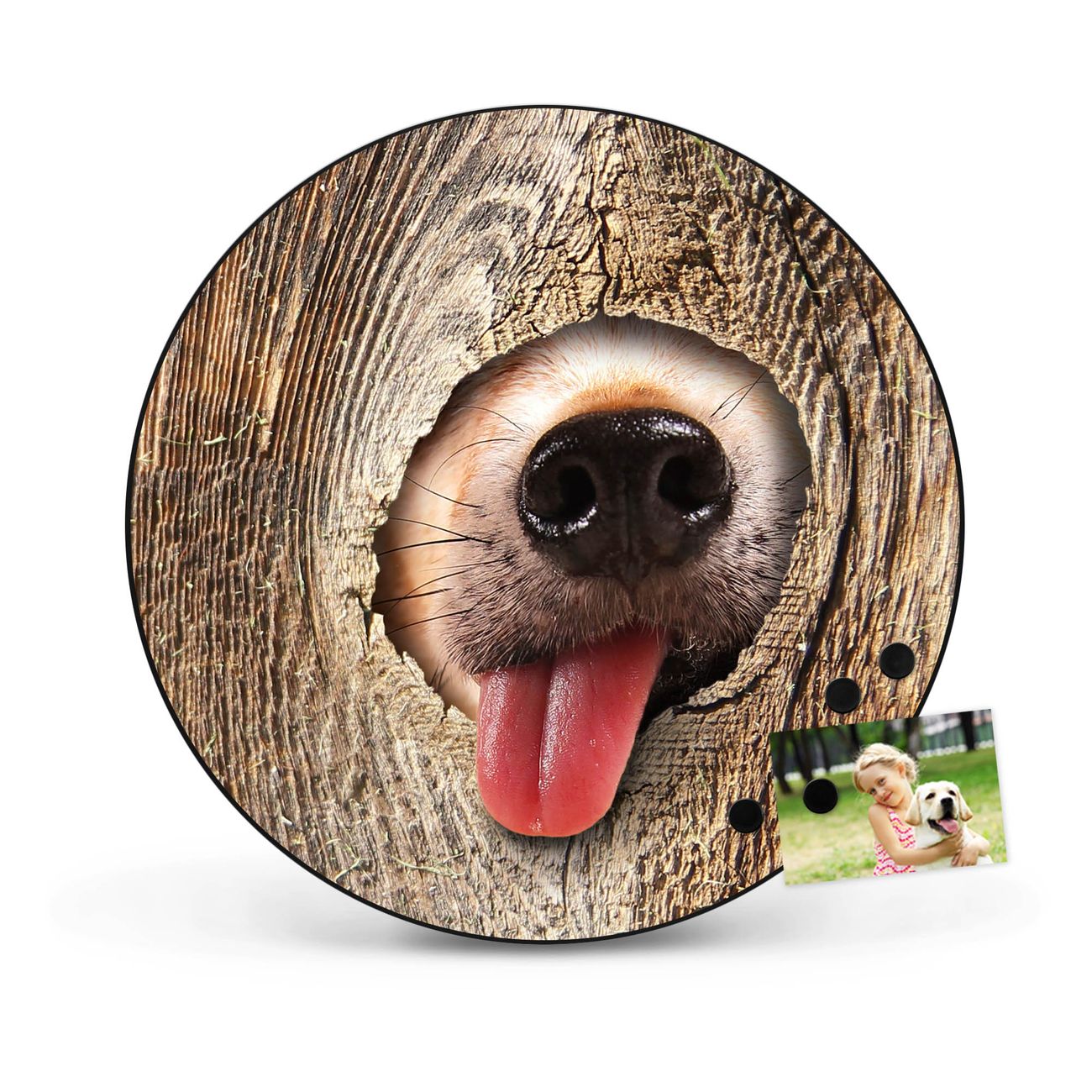 FUNKTION / DESIGN Die banjado Magnettafel mit dem Motiv Motiv Rumschnüffeln bringt Ordnung in Ihr Zettelchaos. Fotos, Termine, Notizen oder Rezepte lassen Sich hier stilvoll mit Magneten ordnen, Sie behalten alles im Blick. Die Design Magnetwand ist beschreibbar und wieder abwischbar. Mit dieser Pinnwand haben Sie auch ohne Notizen und Magneten ein schönes Dekoelement. Das Format bietet Ihnen ausreichend Platz um alle wichtigen Informationen im Blick zu behalten. DETAILS / NUTZEN Die magnetische Metall Pinnwand besteht aus schwarz lackiertem Stahl. Sie hat einen Durchmesser von 47cm. Es befinden sich an den Seiten zwei vorgefertigte Löcher die eine schnelle und unkomplizierte Anbringung ermöglichen. Das Motiv ist mit einem seidenmatten Laminat versehen und schützt so zusätzlich vor Kratzern. Es halten alle handelsüblichen Magneten daran. Wir sind ein kleines Team aus dem Herzen von Sachsen. Wir fertigen alle Artikel von Hand für Sie an, Sie erhalten keine preiswerte Importware. Auf Wunsch können Sie auch Ihr eigenes Foto auf die Magnettafel aufbringen, schreiben Sie uns an.
