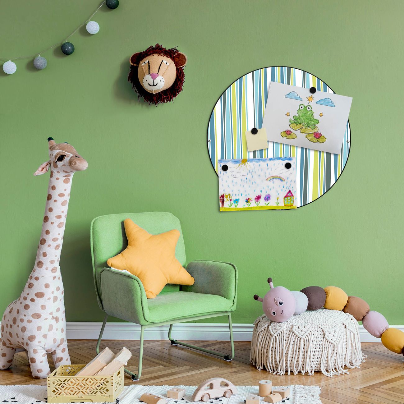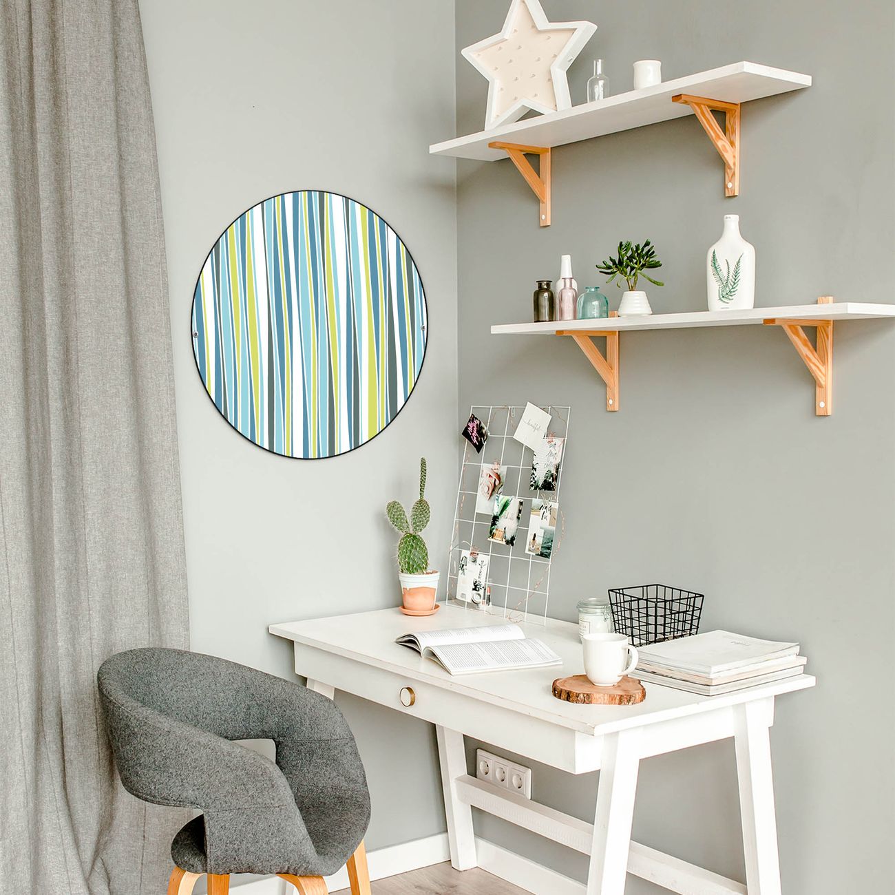 FUNKTION / DESIGN Die banjado Magnettafel mit dem Motiv Motiv Schilf Abstrakt bringt Ordnung in Ihr Zettelchaos. Fotos, Termine, Notizen oder Rezepte lassen Sich hier stilvoll mit Magneten ordnen, Sie behalten alles im Blick. Die Design Magnetwand ist beschreibbar und wieder abwischbar. Mit dieser Pinnwand haben Sie auch ohne Notizen und Magneten ein schönes Dekoelement. Das Format bietet Ihnen ausreichend Platz um alle wichtigen Informationen im Blick zu behalten. DETAILS / NUTZEN Die magnetische Metall Pinnwand besteht aus schwarz lackiertem Stahl. Sie hat einen Durchmesser von 47cm. Es befinden sich an den Seiten zwei vorgefertigte Löcher die eine schnelle und unkomplizierte Anbringung ermöglichen. Das Motiv ist mit einem seidenmatten Laminat versehen und schützt so zusätzlich vor Kratzern. Es halten alle handelsüblichen Magneten daran. Wir sind ein kleines Team aus dem Herzen von Sachsen. Wir fertigen alle Artikel von Hand für Sie an, Sie erhalten keine preiswerte Importware. Auf Wunsch können Sie auch Ihr eigenes Foto auf die Magnettafel aufbringen, schreiben Sie uns an.