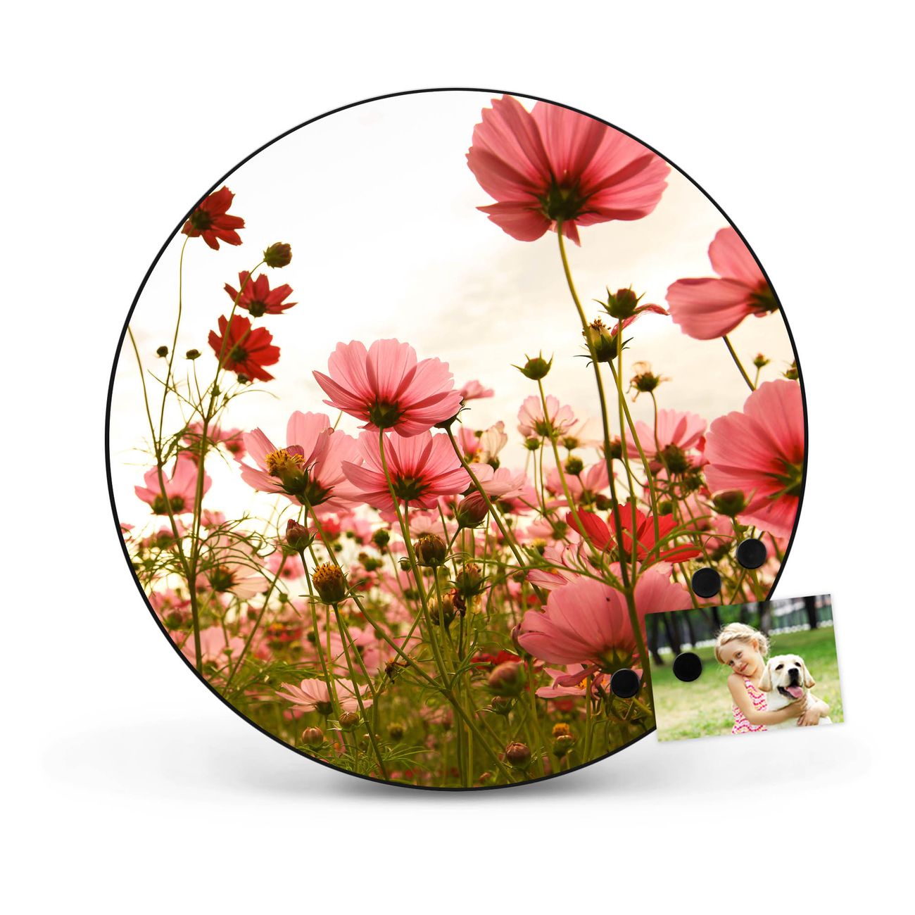 FUNKTION / DESIGN Die banjado Magnettafel mit dem Motiv Motiv Schmuckkörbchen bringt Ordnung in Ihr Zettelchaos. Fotos, Termine, Notizen oder Rezepte lassen Sich hier stilvoll mit Magneten ordnen, Sie behalten alles im Blick. Die Design Magnetwand ist beschreibbar und wieder abwischbar. Mit dieser Pinnwand haben Sie auch ohne Notizen und Magneten ein schönes Dekoelement. Das Format bietet Ihnen ausreichend Platz um alle wichtigen Informationen im Blick zu behalten. DETAILS / NUTZEN Die magnetische Metall Pinnwand besteht aus schwarz lackiertem Stahl. Sie hat einen Durchmesser von 47cm. Es befinden sich an den Seiten zwei vorgefertigte Löcher die eine schnelle und unkomplizierte Anbringung ermöglichen. Das Motiv ist mit einem seidenmatten Laminat versehen und schützt so zusätzlich vor Kratzern. Es halten alle handelsüblichen Magneten daran. Wir sind ein kleines Team aus dem Herzen von Sachsen. Wir fertigen alle Artikel von Hand für Sie an, Sie erhalten keine preiswerte Importware. Auf Wunsch können Sie auch Ihr eigenes Foto auf die Magnettafel aufbringen, schreiben Sie uns an.