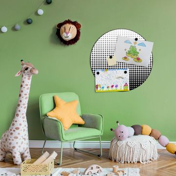 FUNKTION / DESIGN Die banjado Magnettafel mit dem Motiv Motiv Schwarz Weiß bringt Ordnung in Ihr Zettelchaos. Fotos, Termine, Notizen oder Rezepte lassen Sich hier stilvoll mit Magneten ordnen, Sie behalten alles im Blick. Die Design Magnetwand ist beschreibbar und wieder abwischbar. Mit dieser Pinnwand haben Sie auch ohne Notizen und Magneten ein schönes Dekoelement. Das Format bietet Ihnen ausreichend Platz um alle wichtigen Informationen im Blick zu behalten. DETAILS / NUTZEN Die magnetische Metall Pinnwand besteht aus schwarz lackiertem Stahl. Sie hat einen Durchmesser von 47cm. Es befinden sich an den Seiten zwei vorgefertigte Löcher die eine schnelle und unkomplizierte Anbringung ermöglichen. Das Motiv ist mit einem seidenmatten Laminat versehen und schützt so zusätzlich vor Kratzern. Es halten alle handelsüblichen Magneten daran. Wir sind ein kleines Team aus dem Herzen von Sachsen. Wir fertigen alle Artikel von Hand für Sie an, Sie erhalten keine preiswerte Importware. Auf Wunsch können Sie auch Ihr eigenes Foto auf die Magnettafel aufbringen, schreiben Sie uns an.