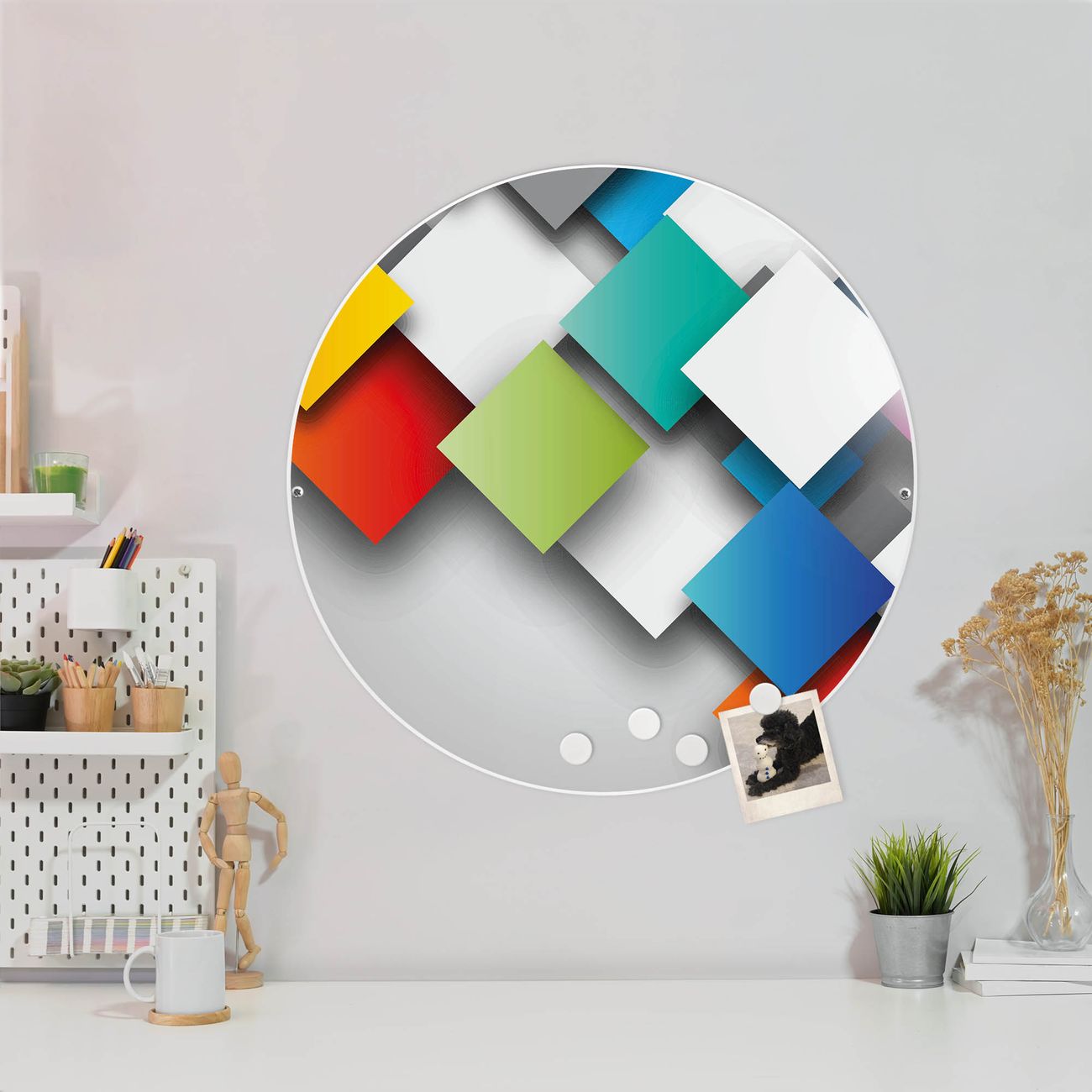 Stahl Magnettafel rund 47cm Schwebende Quadrate