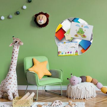 FUNKTION / DESIGN Die banjado Magnettafel mit dem Motiv Motiv Schwebende Quadrate bringt Ordnung in Ihr Zettelchaos. Fotos, Termine, Notizen oder Rezepte lassen Sich hier stilvoll mit Magneten ordnen, Sie behalten alles im Blick. Die Design Magnetwand ist beschreibbar und wieder abwischbar. Mit dieser Pinnwand haben Sie auch ohne Notizen und Magneten ein schönes Dekoelement. Das Format bietet Ihnen ausreichend Platz um alle wichtigen Informationen im Blick zu behalten. DETAILS / NUTZEN Die magnetische Metall Pinnwand besteht aus weiß lackiertem Stahl. Sie hat einen Durchmesser von 47cm. Es befinden sich an den Seiten zwei vorgefertigte Löcher die eine schnelle und unkomplizierte Anbringung ermöglichen. Das Motiv ist mit einem seidenmatten Laminat versehen und schützt so zusätzlich vor Kratzern. Es halten alle handelsüblichen Magneten daran. Wir sind ein kleines Team aus dem Herzen von Sachsen. Wir fertigen alle Artikel von Hand für Sie an, Sie erhalten keine preiswerte Importware. Auf Wunsch können Sie auch Ihr eigenes Foto auf die Magnettafel aufbringen, schreiben Sie uns an.