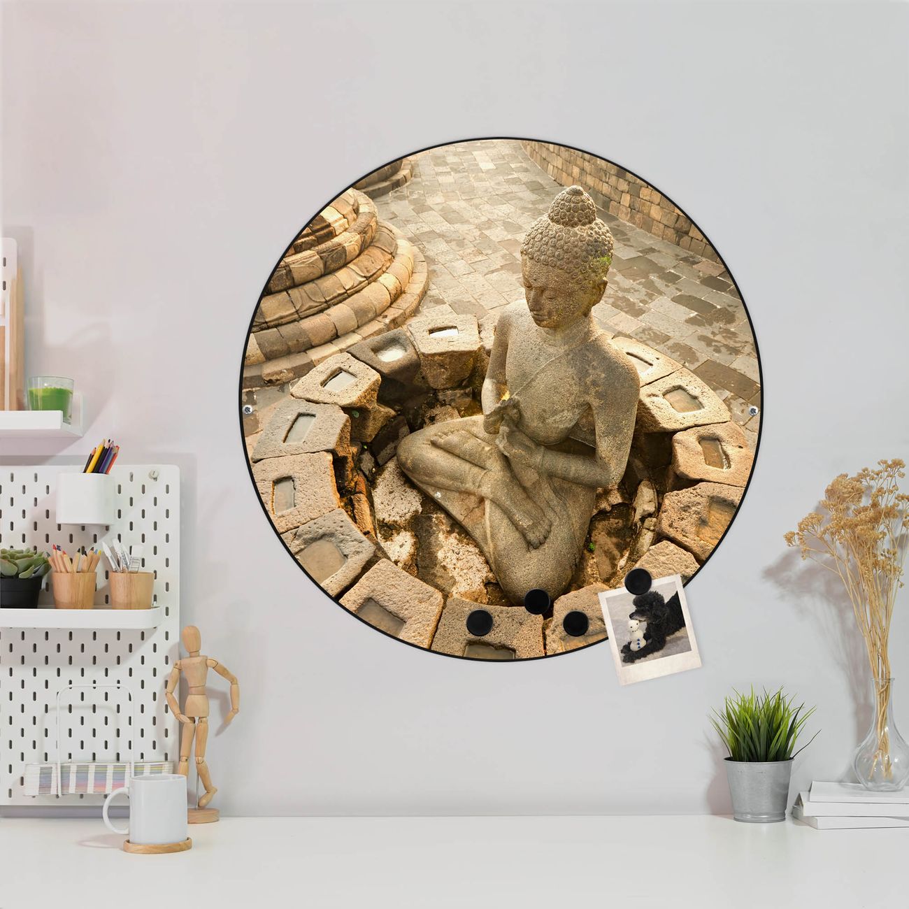 Stahl Magnettafel rund 47cm Sitzender Buddha