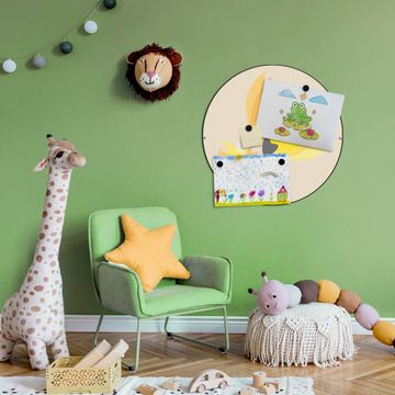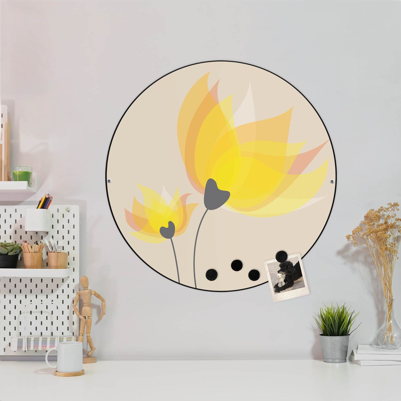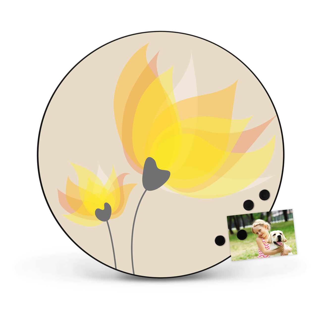 FUNKTION / DESIGN Die banjado Magnettafel mit dem Motiv Motiv Sommerblüten bringt Ordnung in Ihr Zettelchaos. Fotos, Termine, Notizen oder Rezepte lassen Sich hier stilvoll mit Magneten ordnen, Sie behalten alles im Blick. Die Design Magnetwand ist beschreibbar und wieder abwischbar. Mit dieser Pinnwand haben Sie auch ohne Notizen und Magneten ein schönes Dekoelement. Das Format bietet Ihnen ausreichend Platz um alle wichtigen Informationen im Blick zu behalten. DETAILS / NUTZEN Die magnetische Metall Pinnwand besteht aus schwarz lackiertem Stahl. Sie hat einen Durchmesser von 47cm. Es befinden sich an den Seiten zwei vorgefertigte Löcher die eine schnelle und unkomplizierte Anbringung ermöglichen. Das Motiv ist mit einem seidenmatten Laminat versehen und schützt so zusätzlich vor Kratzern. Es halten alle handelsüblichen Magneten daran. Wir sind ein kleines Team aus dem Herzen von Sachsen. Wir fertigen alle Artikel von Hand für Sie an, Sie erhalten keine preiswerte Importware. Auf Wunsch können Sie auch Ihr eigenes Foto auf die Magnettafel aufbringen, schreiben Sie uns an.