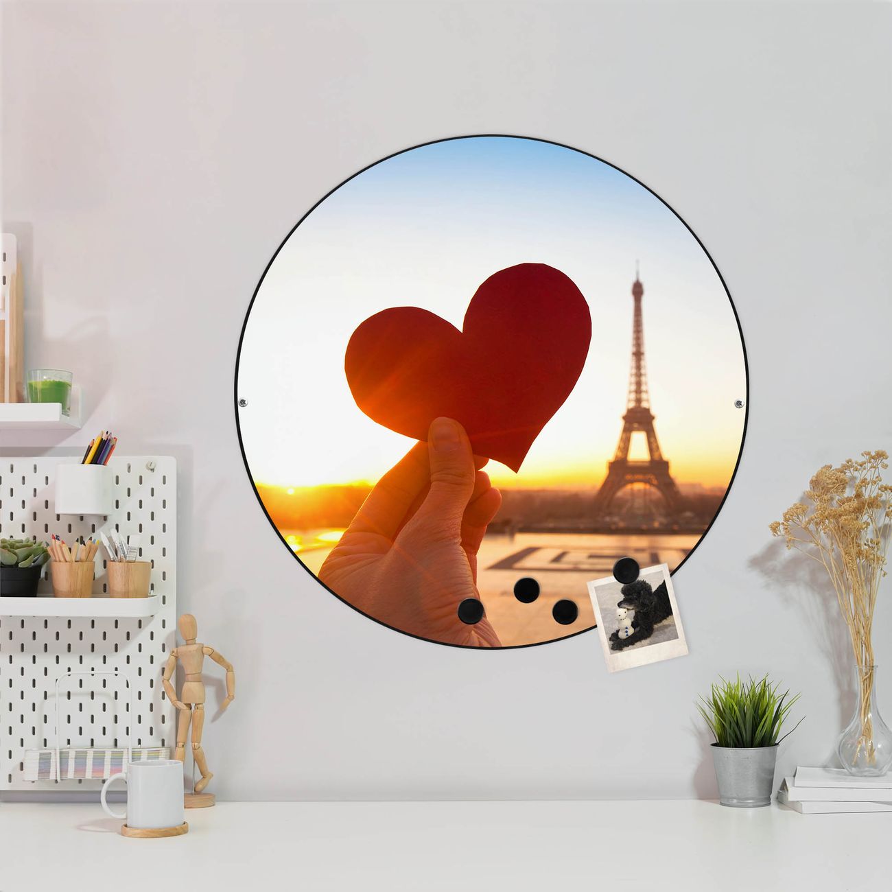 Stahl Magnettafel rund 47cm Stadt Der Liebe