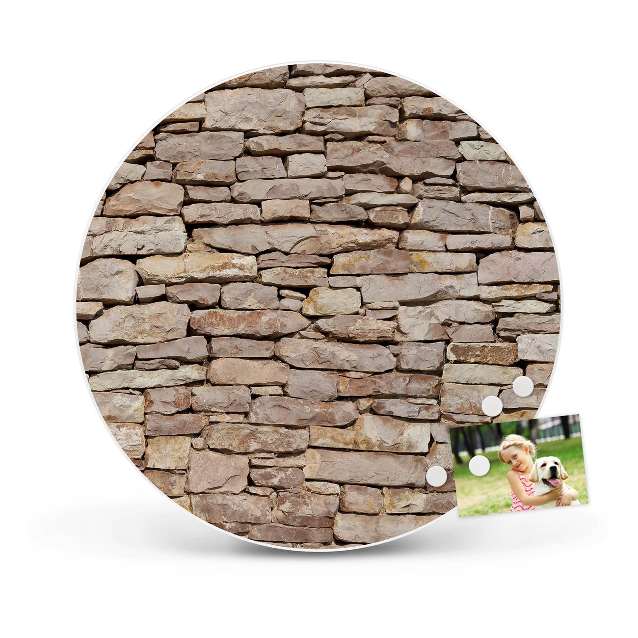 FUNKTION / DESIGN Die banjado Magnettafel mit dem Motiv Motiv Stadtmauer bringt Ordnung in Ihr Zettelchaos. Fotos, Termine, Notizen oder Rezepte lassen Sich hier stilvoll mit Magneten ordnen, Sie behalten alles im Blick. Die Design Magnetwand ist beschreibbar und wieder abwischbar. Mit dieser Pinnwand haben Sie auch ohne Notizen und Magneten ein schönes Dekoelement. Das Format bietet Ihnen ausreichend Platz um alle wichtigen Informationen im Blick zu behalten. DETAILS / NUTZEN Die magnetische Metall Pinnwand besteht aus weiß lackiertem Stahl. Sie hat einen Durchmesser von 47cm. Es befinden sich an den Seiten zwei vorgefertigte Löcher die eine schnelle und unkomplizierte Anbringung ermöglichen. Das Motiv ist mit einem seidenmatten Laminat versehen und schützt so zusätzlich vor Kratzern. Es halten alle handelsüblichen Magneten daran. Wir sind ein kleines Team aus dem Herzen von Sachsen. Wir fertigen alle Artikel von Hand für Sie an, Sie erhalten keine preiswerte Importware. Auf Wunsch können Sie auch Ihr eigenes Foto auf die Magnettafel aufbringen, schreiben Sie uns an.