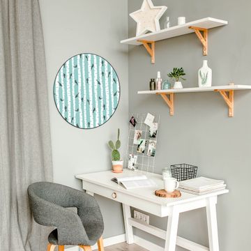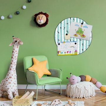 FUNKTION / DESIGN Die banjado Magnettafel mit dem Motiv Motiv Stare Und Birken bringt Ordnung in Ihr Zettelchaos. Fotos, Termine, Notizen oder Rezepte lassen Sich hier stilvoll mit Magneten ordnen, Sie behalten alles im Blick. Die Design Magnetwand ist beschreibbar und wieder abwischbar. Mit dieser Pinnwand haben Sie auch ohne Notizen und Magneten ein schönes Dekoelement. Das Format bietet Ihnen ausreichend Platz um alle wichtigen Informationen im Blick zu behalten. DETAILS / NUTZEN Die magnetische Metall Pinnwand besteht aus schwarz lackiertem Stahl. Sie hat einen Durchmesser von 47cm. Es befinden sich an den Seiten zwei vorgefertigte Löcher die eine schnelle und unkomplizierte Anbringung ermöglichen. Das Motiv ist mit einem seidenmatten Laminat versehen und schützt so zusätzlich vor Kratzern. Es halten alle handelsüblichen Magneten daran. Wir sind ein kleines Team aus dem Herzen von Sachsen. Wir fertigen alle Artikel von Hand für Sie an, Sie erhalten keine preiswerte Importware. Auf Wunsch können Sie auch Ihr eigenes Foto auf die Magnettafel aufbringen, schreiben Sie uns an.