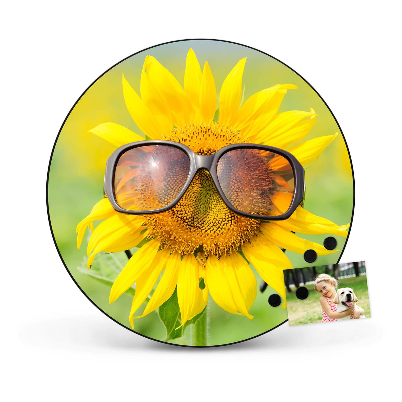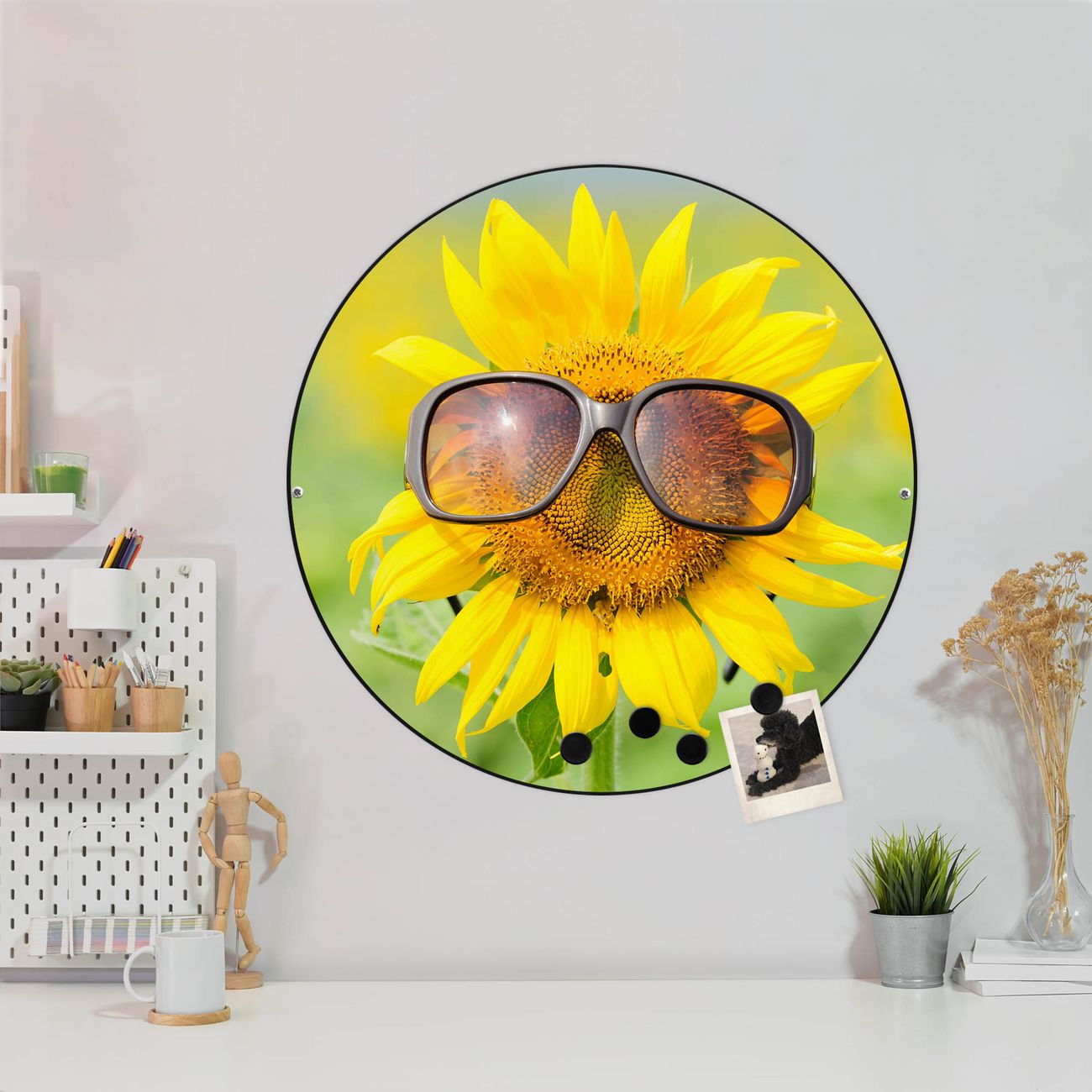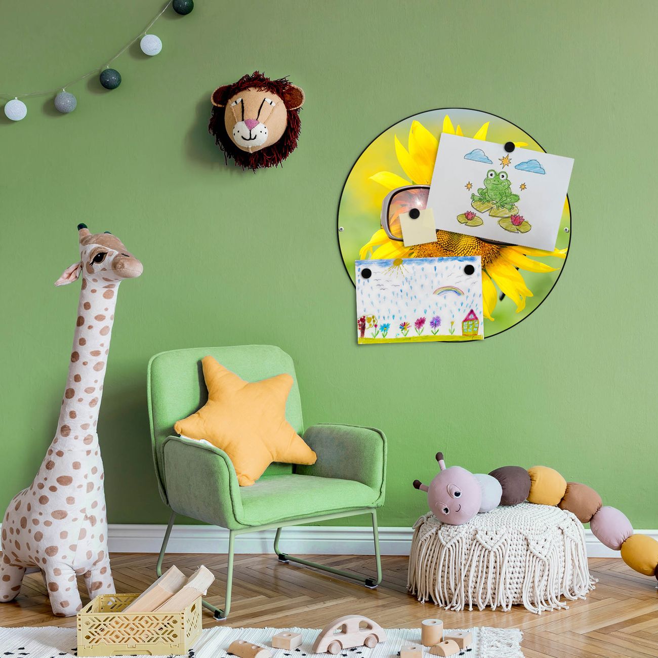 FUNKTION / DESIGN Die banjado Magnettafel mit dem Motiv Motiv Sunny bringt Ordnung in Ihr Zettelchaos. Fotos, Termine, Notizen oder Rezepte lassen Sich hier stilvoll mit Magneten ordnen, Sie behalten alles im Blick. Die Design Magnetwand ist beschreibbar und wieder abwischbar. Mit dieser Pinnwand haben Sie auch ohne Notizen und Magneten ein schönes Dekoelement. Das Format bietet Ihnen ausreichend Platz um alle wichtigen Informationen im Blick zu behalten. DETAILS / NUTZEN Die magnetische Metall Pinnwand besteht aus schwarz lackiertem Stahl. Sie hat einen Durchmesser von 47cm. Es befinden sich an den Seiten zwei vorgefertigte Löcher die eine schnelle und unkomplizierte Anbringung ermöglichen. Das Motiv ist mit einem seidenmatten Laminat versehen und schützt so zusätzlich vor Kratzern. Es halten alle handelsüblichen Magneten daran. Wir sind ein kleines Team aus dem Herzen von Sachsen. Wir fertigen alle Artikel von Hand für Sie an, Sie erhalten keine preiswerte Importware. Auf Wunsch können Sie auch Ihr eigenes Foto auf die Magnettafel aufbringen, schreiben Sie uns an.