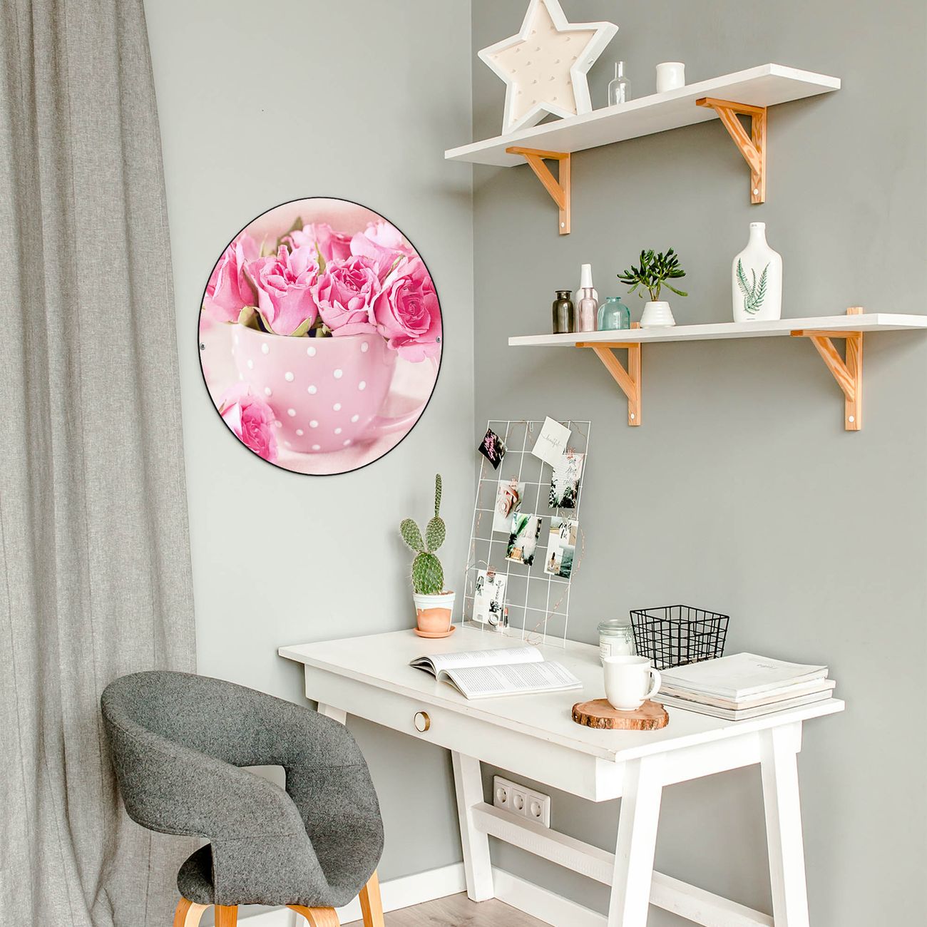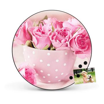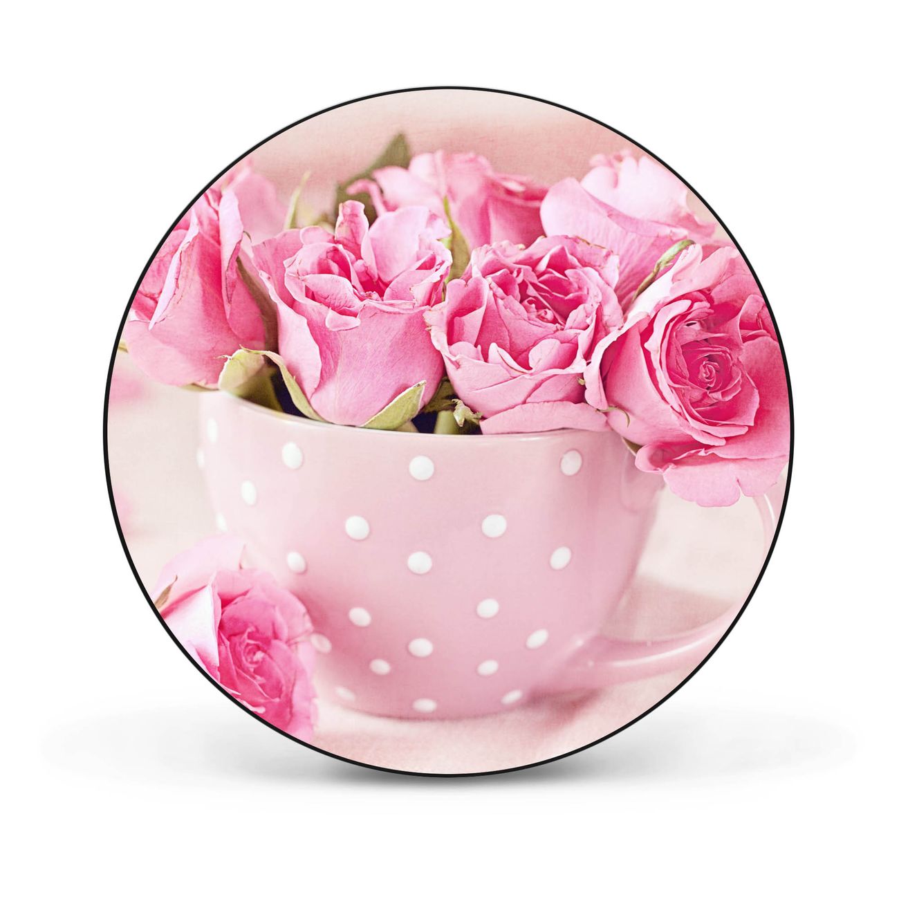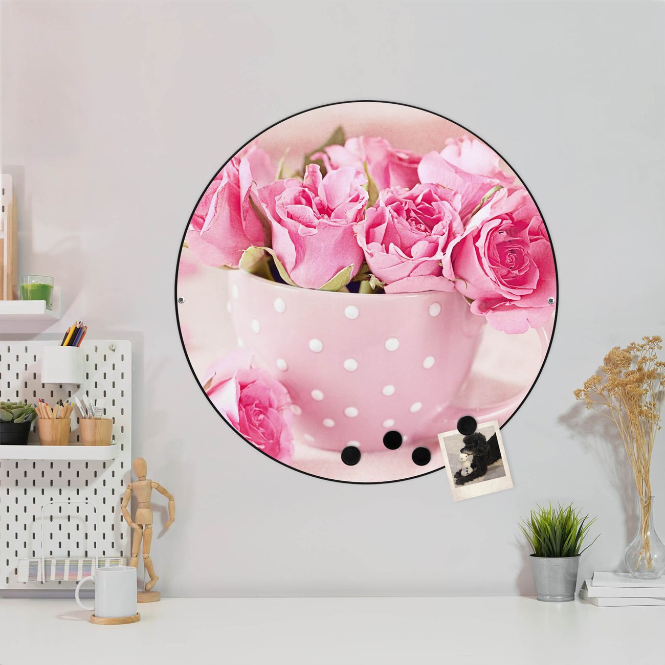 Stahl Magnettafel rund 47cm Tasse Voll Rosen