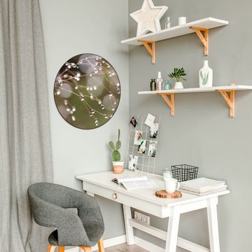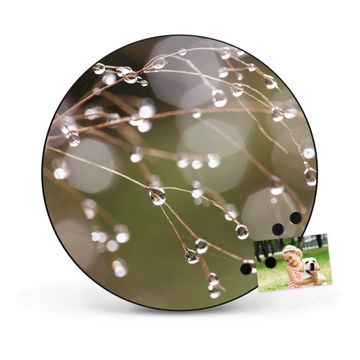 FUNKTION / DESIGN Die banjado Magnettafel mit dem Motiv Motiv Tau Auf Zweigen bringt Ordnung in Ihr Zettelchaos. Fotos, Termine, Notizen oder Rezepte lassen Sich hier stilvoll mit Magneten ordnen, Sie behalten alles im Blick. Die Design Magnetwand ist beschreibbar und wieder abwischbar. Mit dieser Pinnwand haben Sie auch ohne Notizen und Magneten ein schönes Dekoelement. Das Format bietet Ihnen ausreichend Platz um alle wichtigen Informationen im Blick zu behalten. DETAILS / NUTZEN Die magnetische Metall Pinnwand besteht aus schwarz lackiertem Stahl. Sie hat einen Durchmesser von 47cm. Es befinden sich an den Seiten zwei vorgefertigte Löcher die eine schnelle und unkomplizierte Anbringung ermöglichen. Das Motiv ist mit einem seidenmatten Laminat versehen und schützt so zusätzlich vor Kratzern. Es halten alle handelsüblichen Magneten daran. Wir sind ein kleines Team aus dem Herzen von Sachsen. Wir fertigen alle Artikel von Hand für Sie an, Sie erhalten keine preiswerte Importware. Auf Wunsch können Sie auch Ihr eigenes Foto auf die Magnettafel aufbringen, schreiben Sie uns an.