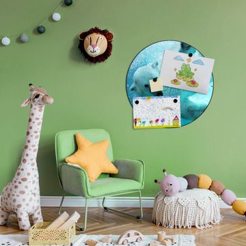 FUNKTION / DESIGN Die banjado Magnettafel mit dem Motiv Motiv Tauchender Eisbär bringt Ordnung in Ihr Zettelchaos. Fotos, Termine, Notizen oder Rezepte lassen Sich hier stilvoll mit Magneten ordnen, Sie behalten alles im Blick. Die Design Magnetwand ist beschreibbar und wieder abwischbar. Mit dieser Pinnwand haben Sie auch ohne Notizen und Magneten ein schönes Dekoelement. Das Format bietet Ihnen ausreichend Platz um alle wichtigen Informationen im Blick zu behalten. DETAILS / NUTZEN Die magnetische Metall Pinnwand besteht aus schwarz lackiertem Stahl. Sie hat einen Durchmesser von 47cm. Es befinden sich an den Seiten zwei vorgefertigte Löcher die eine schnelle und unkomplizierte Anbringung ermöglichen. Das Motiv ist mit einem seidenmatten Laminat versehen und schützt so zusätzlich vor Kratzern. Es halten alle handelsüblichen Magneten daran. Wir sind ein kleines Team aus dem Herzen von Sachsen. Wir fertigen alle Artikel von Hand für Sie an, Sie erhalten keine preiswerte Importware. Auf Wunsch können Sie auch Ihr eigenes Foto auf die Magnettafel aufbringen, schreiben Sie uns an.