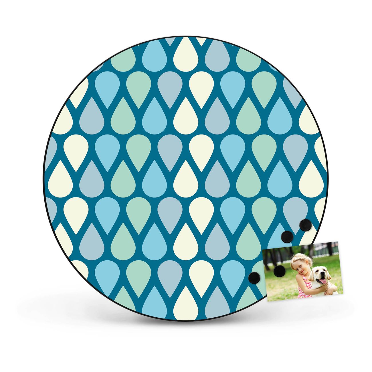FUNKTION / DESIGN Die banjado Magnettafel mit dem Motiv Motiv Tropfen bringt Ordnung in Ihr Zettelchaos. Fotos, Termine, Notizen oder Rezepte lassen Sich hier stilvoll mit Magneten ordnen, Sie behalten alles im Blick. Die Design Magnetwand ist beschreibbar und wieder abwischbar. Mit dieser Pinnwand haben Sie auch ohne Notizen und Magneten ein schönes Dekoelement. Das Format bietet Ihnen ausreichend Platz um alle wichtigen Informationen im Blick zu behalten. DETAILS / NUTZEN Die magnetische Metall Pinnwand besteht aus schwarz lackiertem Stahl. Sie hat einen Durchmesser von 47cm. Es befinden sich an den Seiten zwei vorgefertigte Löcher die eine schnelle und unkomplizierte Anbringung ermöglichen. Das Motiv ist mit einem seidenmatten Laminat versehen und schützt so zusätzlich vor Kratzern. Es halten alle handelsüblichen Magneten daran. Wir sind ein kleines Team aus dem Herzen von Sachsen. Wir fertigen alle Artikel von Hand für Sie an, Sie erhalten keine preiswerte Importware. Auf Wunsch können Sie auch Ihr eigenes Foto auf die Magnettafel aufbringen, schreiben Sie uns an.