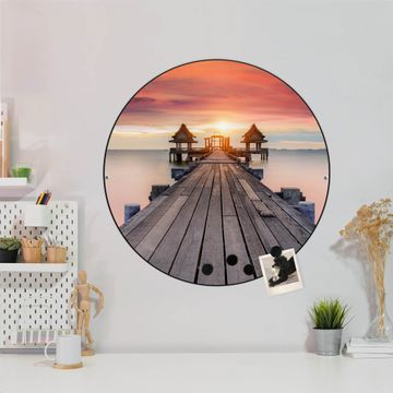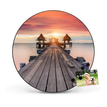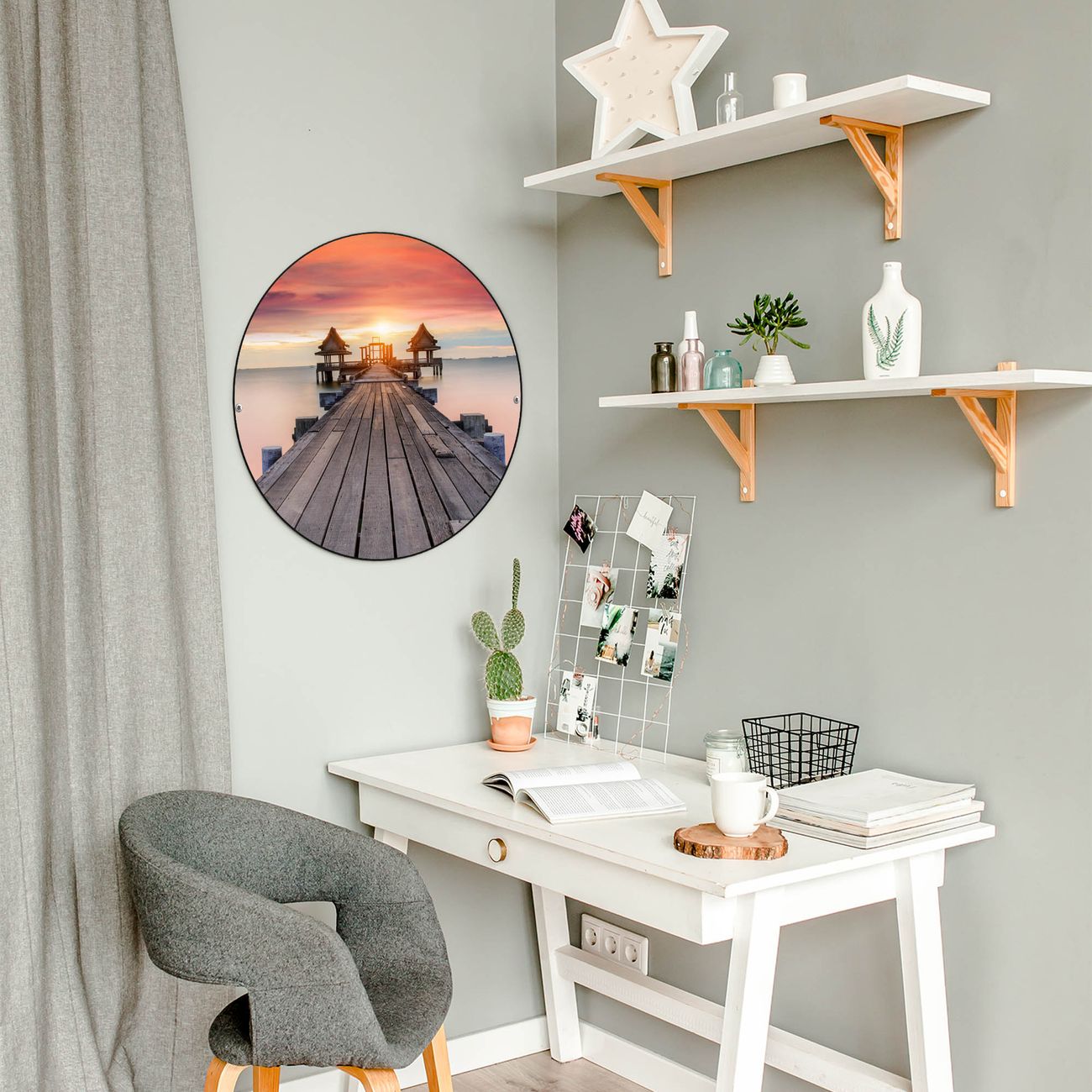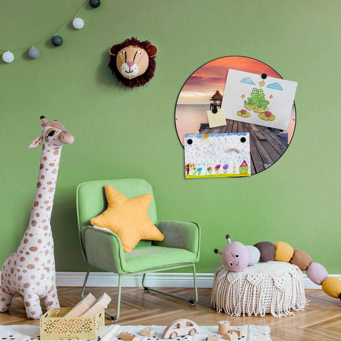 FUNKTION / DESIGN Die banjado Magnettafel mit dem Motiv Motiv Überm Nebelmeer bringt Ordnung in Ihr Zettelchaos. Fotos, Termine, Notizen oder Rezepte lassen Sich hier stilvoll mit Magneten ordnen, Sie behalten alles im Blick. Die Design Magnetwand ist beschreibbar und wieder abwischbar. Mit dieser Pinnwand haben Sie auch ohne Notizen und Magneten ein schönes Dekoelement. Das Format bietet Ihnen ausreichend Platz um alle wichtigen Informationen im Blick zu behalten. DETAILS / NUTZEN Die magnetische Metall Pinnwand besteht aus schwarz lackiertem Stahl. Sie hat einen Durchmesser von 47cm. Es befinden sich an den Seiten zwei vorgefertigte Löcher die eine schnelle und unkomplizierte Anbringung ermöglichen. Das Motiv ist mit einem seidenmatten Laminat versehen und schützt so zusätzlich vor Kratzern. Es halten alle handelsüblichen Magneten daran. Wir sind ein kleines Team aus dem Herzen von Sachsen. Wir fertigen alle Artikel von Hand für Sie an, Sie erhalten keine preiswerte Importware. Auf Wunsch können Sie auch Ihr eigenes Foto auf die Magnettafel aufbringen, schreiben Sie uns an.