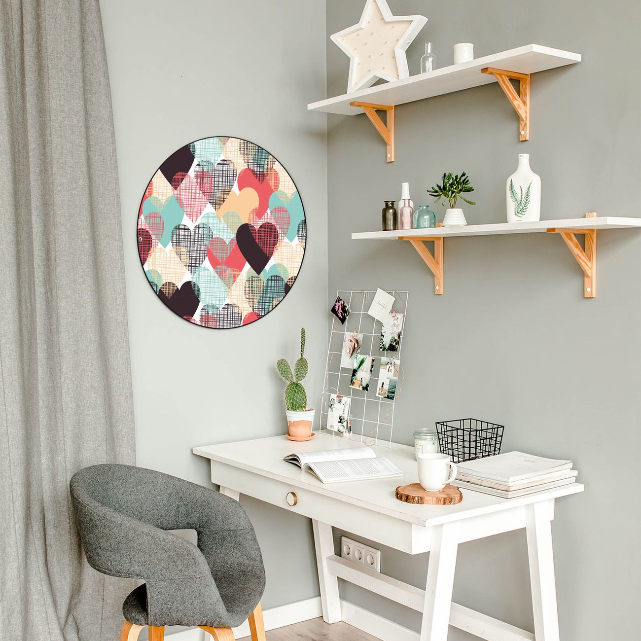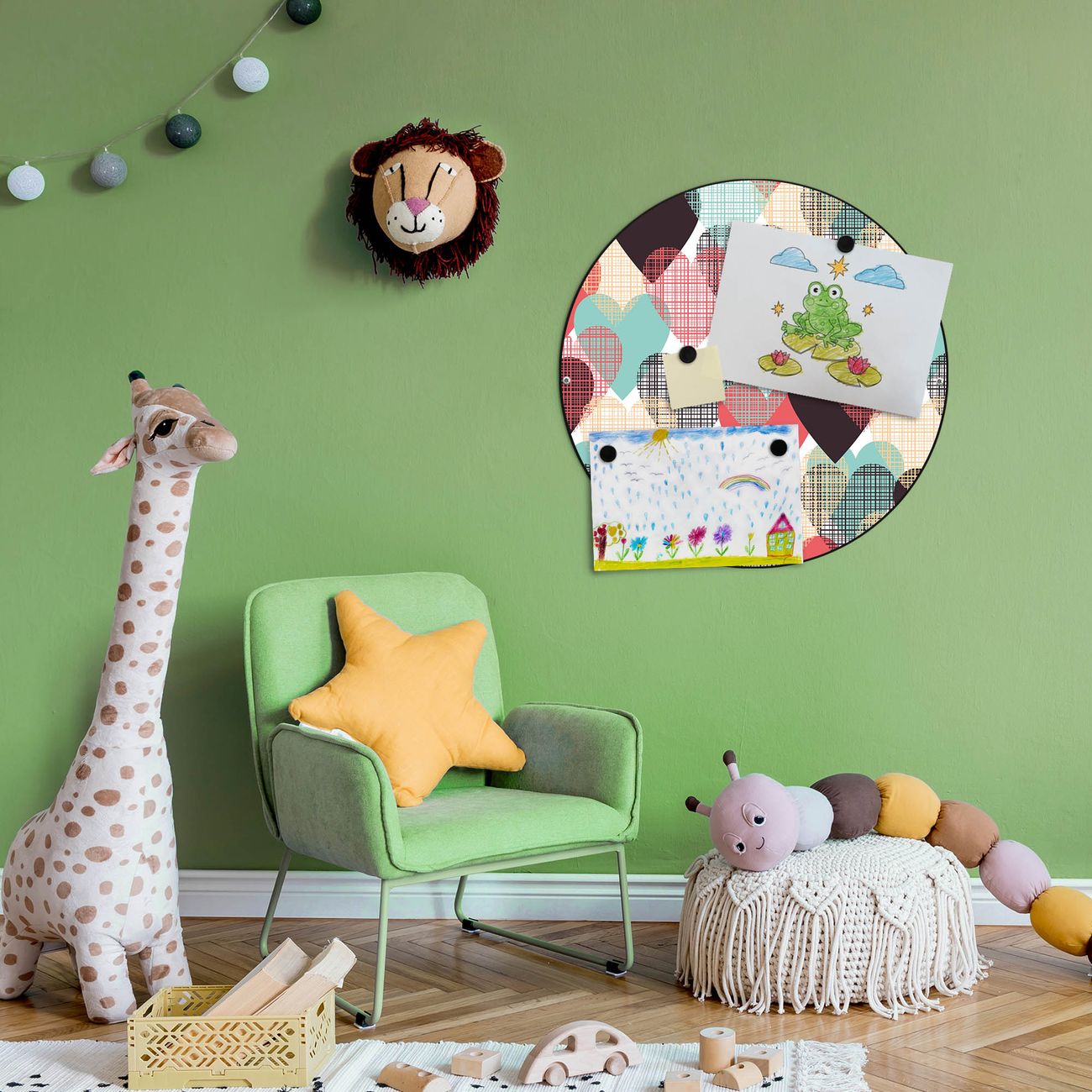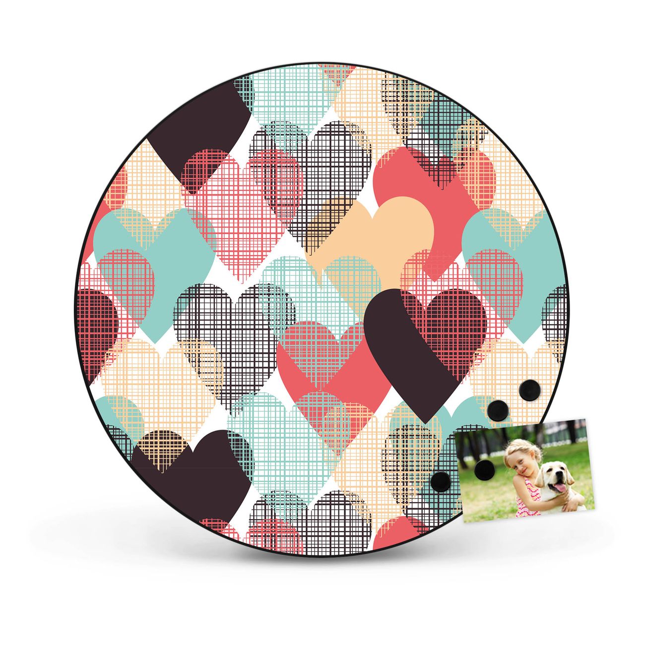 FUNKTION / DESIGN Die banjado Magnettafel mit dem Motiv Motiv Unter Herzen bringt Ordnung in Ihr Zettelchaos. Fotos, Termine, Notizen oder Rezepte lassen Sich hier stilvoll mit Magneten ordnen, Sie behalten alles im Blick. Die Design Magnetwand ist beschreibbar und wieder abwischbar. Mit dieser Pinnwand haben Sie auch ohne Notizen und Magneten ein schönes Dekoelement. Das Format bietet Ihnen ausreichend Platz um alle wichtigen Informationen im Blick zu behalten. DETAILS / NUTZEN Die magnetische Metall Pinnwand besteht aus schwarz lackiertem Stahl. Sie hat einen Durchmesser von 47cm. Es befinden sich an den Seiten zwei vorgefertigte Löcher die eine schnelle und unkomplizierte Anbringung ermöglichen. Das Motiv ist mit einem seidenmatten Laminat versehen und schützt so zusätzlich vor Kratzern. Es halten alle handelsüblichen Magneten daran. Wir sind ein kleines Team aus dem Herzen von Sachsen. Wir fertigen alle Artikel von Hand für Sie an, Sie erhalten keine preiswerte Importware. Auf Wunsch können Sie auch Ihr eigenes Foto auf die Magnettafel aufbringen, schreiben Sie uns an.