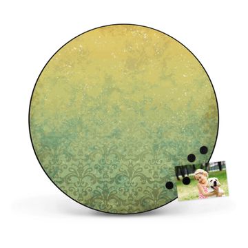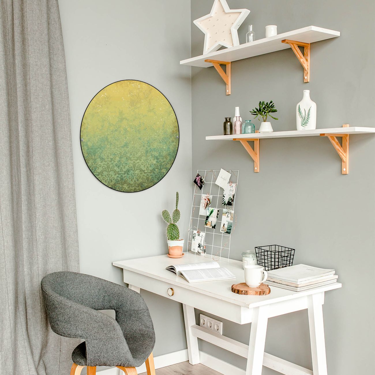 FUNKTION / DESIGN Die banjado Magnettafel mit dem Motiv Motiv Vintage Messing bringt Ordnung in Ihr Zettelchaos. Fotos, Termine, Notizen oder Rezepte lassen Sich hier stilvoll mit Magneten ordnen, Sie behalten alles im Blick. Die Design Magnetwand ist beschreibbar und wieder abwischbar. Mit dieser Pinnwand haben Sie auch ohne Notizen und Magneten ein schönes Dekoelement. Das Format bietet Ihnen ausreichend Platz um alle wichtigen Informationen im Blick zu behalten. DETAILS / NUTZEN Die magnetische Metall Pinnwand besteht aus schwarz lackiertem Stahl. Sie hat einen Durchmesser von 47cm. Es befinden sich an den Seiten zwei vorgefertigte Löcher die eine schnelle und unkomplizierte Anbringung ermöglichen. Das Motiv ist mit einem seidenmatten Laminat versehen und schützt so zusätzlich vor Kratzern. Es halten alle handelsüblichen Magneten daran. Wir sind ein kleines Team aus dem Herzen von Sachsen. Wir fertigen alle Artikel von Hand für Sie an, Sie erhalten keine preiswerte Importware. Auf Wunsch können Sie auch Ihr eigenes Foto auf die Magnettafel aufbringen, schreiben Sie uns an.