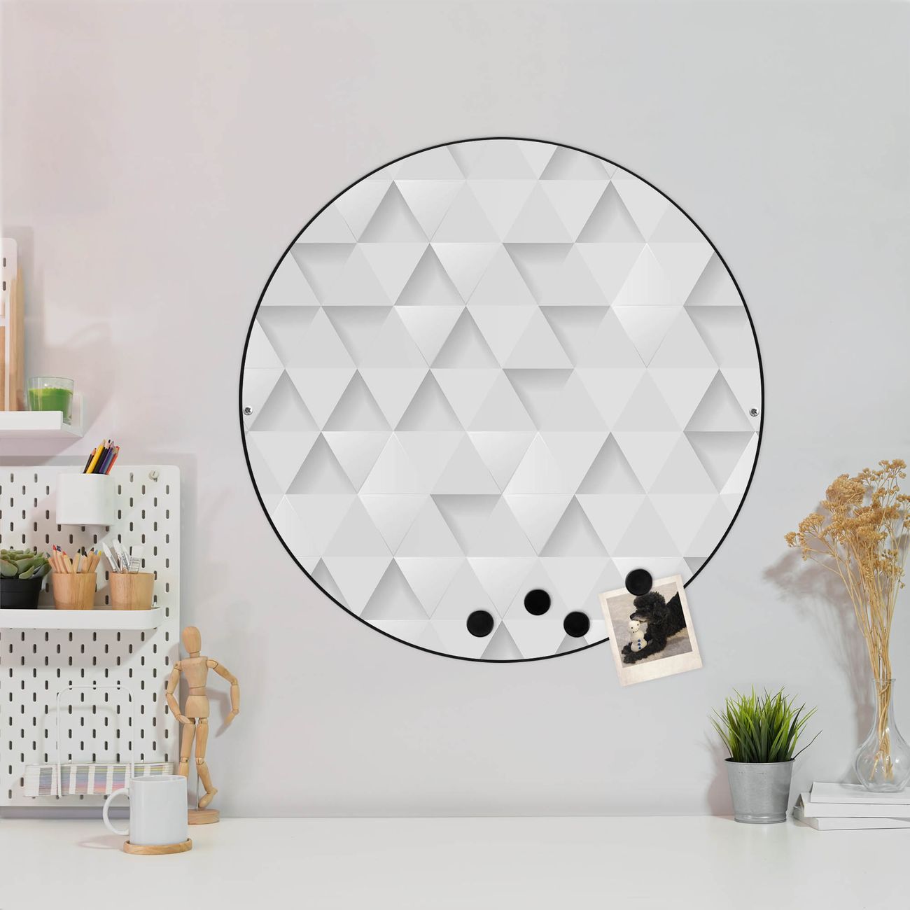 Stahl Magnettafel rund 47cm Weisse Dreiecke