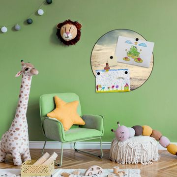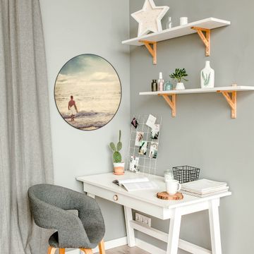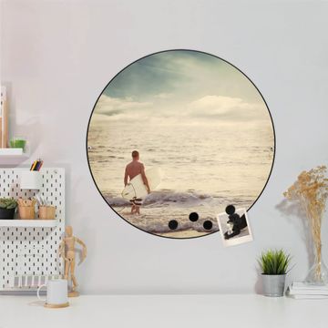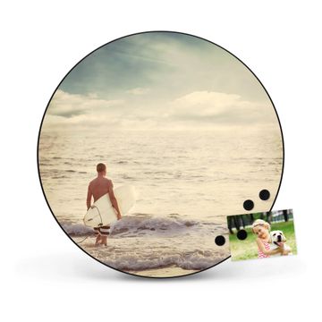 FUNKTION / DESIGN Die banjado Magnettafel mit dem Motiv Motiv Wellenreiten Gehen 2 bringt Ordnung in Ihr Zettelchaos. Fotos, Termine, Notizen oder Rezepte lassen Sich hier stilvoll mit Magneten ordnen, Sie behalten alles im Blick. Die Design Magnetwand ist beschreibbar und wieder abwischbar. Mit dieser Pinnwand haben Sie auch ohne Notizen und Magneten ein schönes Dekoelement. Das Format bietet Ihnen ausreichend Platz um alle wichtigen Informationen im Blick zu behalten. DETAILS / NUTZEN Die magnetische Metall Pinnwand besteht aus schwarz lackiertem Stahl. Sie hat einen Durchmesser von 47cm. Es befinden sich an den Seiten zwei vorgefertigte Löcher die eine schnelle und unkomplizierte Anbringung ermöglichen. Das Motiv ist mit einem seidenmatten Laminat versehen und schützt so zusätzlich vor Kratzern. Es halten alle handelsüblichen Magneten daran. Wir sind ein kleines Team aus dem Herzen von Sachsen. Wir fertigen alle Artikel von Hand für Sie an, Sie erhalten keine preiswerte Importware. Auf Wunsch können Sie auch Ihr eigenes Foto auf die Magnettafel aufbringen, schreiben Sie uns an.